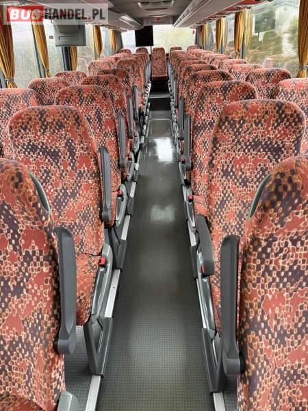 : lodówka, fotele odchylane, oświetlenie indywidualne, nawiewy dyszowe, siateczki, ABS, ASR, tempomat, retarder, podnóżki, stoliczki, mikrofon, klimatyzacja, radio, regulacja wysokości nadwozia, centralny zamek, podwójne szyby boczne, wspomaganie kierownicy, elektryczne lusterka, DVD, ogrzewanie stacjonarne