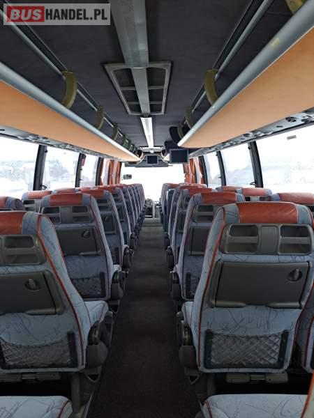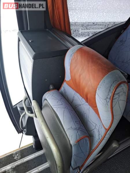 : video, WC, lodówka, caffebar, kabina sypialna, oświetlenie indywidualne, nawiewy dyszowe, siateczki, ABS, ASR, tempomat, retarder, CD, podnóżki, stoliczki, klimatyzacja, radio, regulacja wysokości nadwozia, centralny zamek, podwójne szyby boczne, wspomaganie kierownicy, elektryczne lusterka, fotele odchylane i rozsuwane, DVD, ogrzewanie stacjonarne, ESP