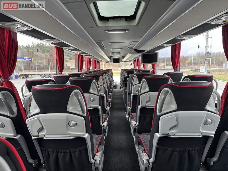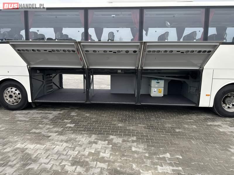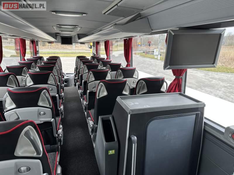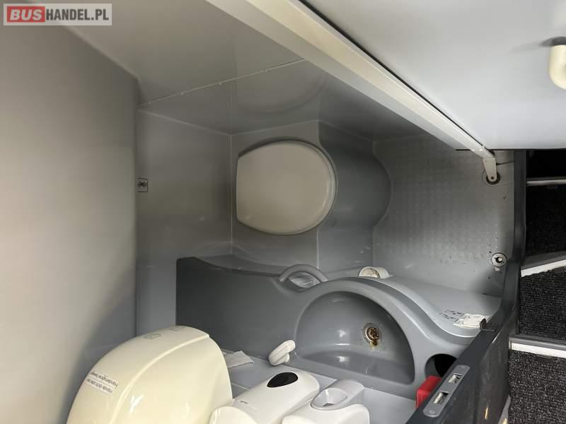 : video, WC, lodówka, caffebar, fotele odchylane, oświetlenie indywidualne, nawiewy dyszowe, siateczki, ABS, ASR, tempomat, retarder, telefon, nawigacja, CD, podnóżki, stoliczki, mikrofon, klimatyzacja, radio, wyświetlacz matrix, sejf, regulacja wysokości nadwozia, centralny zamek, podwójne szyby boczne, wspomaganie kierownicy, elektryczne lusterka, aluminiowe felgi, fotele odchylane i rozsuwane, DVD, ogrzewanie stacjonarne, hak holowniczy, ESP