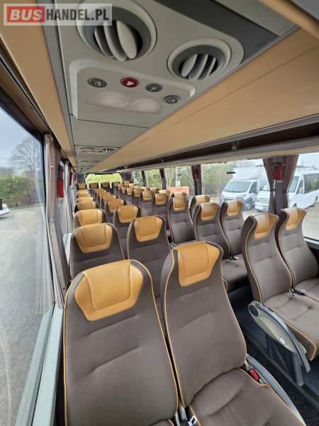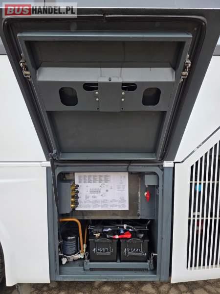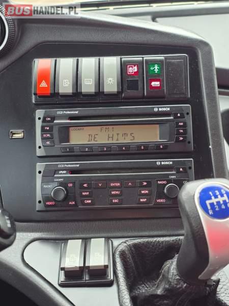 : lodówka, fotele odchylane, oświetlenie indywidualne, nawiewy dyszowe, siateczki, ABS, ASR, tempomat, retarder, podnóżki, stoliczki, mikrofon, klimatyzacja, radio, regulacja wysokości nadwozia, centralny zamek, podwójne szyby boczne, wspomaganie kierownicy, elektryczne lusterka, fotele odchylane i rozsuwane, ogrzewanie stacjonarne