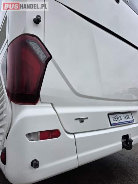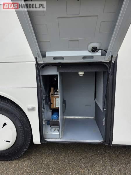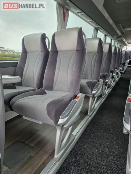 : WC, lodówka, kabina sypialna, fotele odchylane, oświetlenie indywidualne, nawiewy dyszowe, siateczki, ABS, ASR, tempomat, retarder, podnóżki, stoliczki, mikrofon, klimatyzacja, radio, sejf, regulacja wysokości nadwozia, centralny zamek, podwójne szyby boczne, wspomaganie kierownicy, elektryczne lusterka, fotele odchylane i rozsuwane, DVD, ogrzewanie stacjonarne, ESP