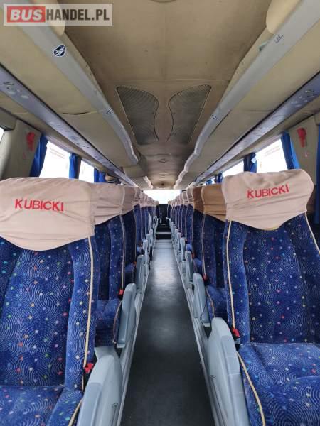 : video, lodówka, kabina sypialna, fotele odchylane, oświetlenie indywidualne, nawiewy dyszowe, ABS, tempomat, retarder, mikrofon, klimatyzacja, radio, regulacja wysokości nadwozia, podwójne szyby boczne, wspomaganie kierownicy, ogrzewanie stacjonarne