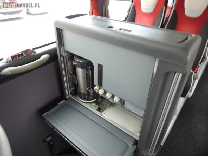 : video, WC, lodówka, caffebar, kabina sypialna, oświetlenie indywidualne, nawiewy dyszowe, siateczki, ABS, ASR, tempomat, retarder, CD, podnóżki, stoliczki, klimatyzacja, radio, rampa dla inwalidów, regulacja wysokości nadwozia, centralny zamek, podwójne szyby boczne, wspomaganie kierownicy, elektryczne lusterka, aluminiowe felgi, fotele odchylane i rozsuwane, DVD, ogrzewanie stacjonarne, ESP
