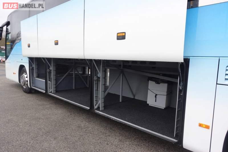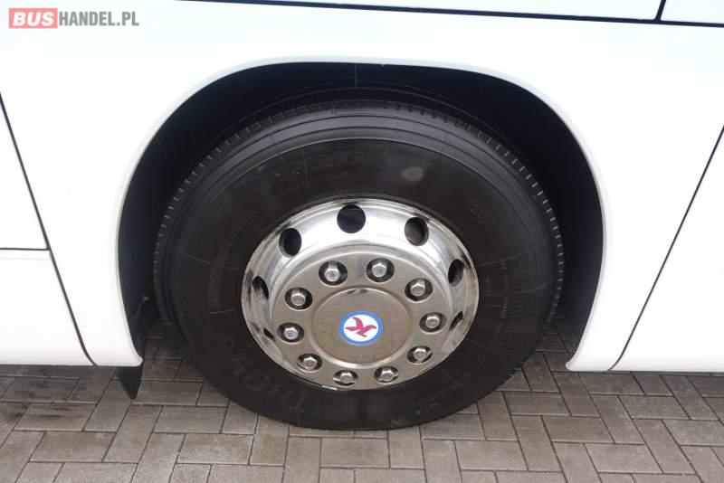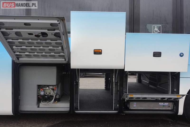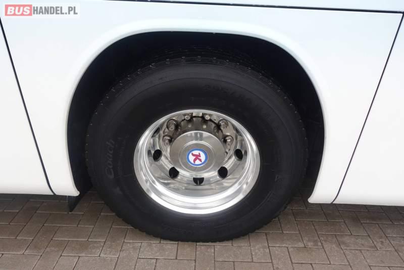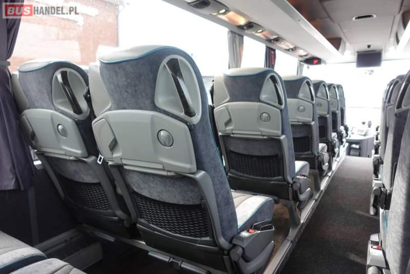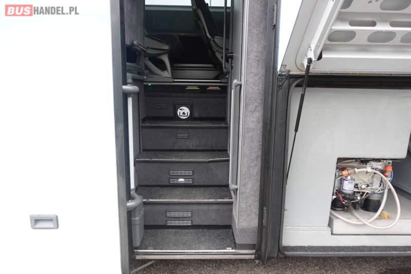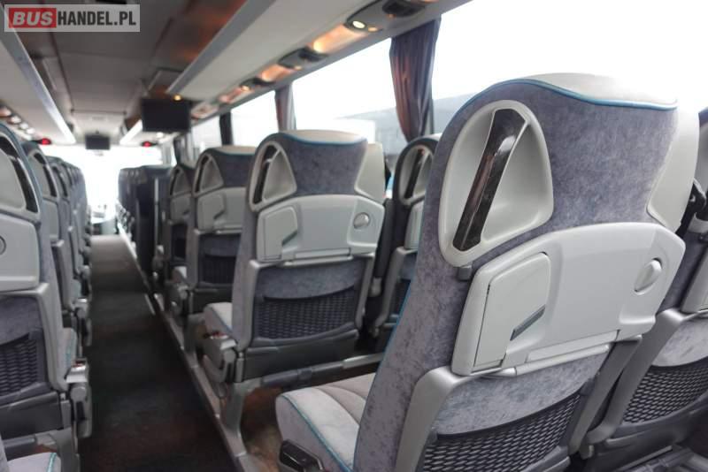 : video, WC, lodówka, kabina sypialna, fotele odchylane, oświetlenie indywidualne, nawiewy dyszowe, siateczki, ABS, ASR, tempomat, retarder, CD, podnóżki, stoliczki, mikrofon, klimatyzacja, radio, rampa dla inwalidów, regulacja wysokości nadwozia, centralny zamek, podwójne szyby boczne, wspomaganie kierownicy, elektryczne lusterka, aluminiowe felgi, fotele odchylane i rozsuwane, DVD, ogrzewanie stacjonarne, ESP