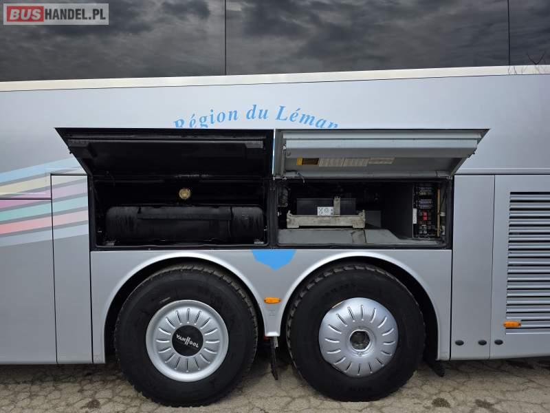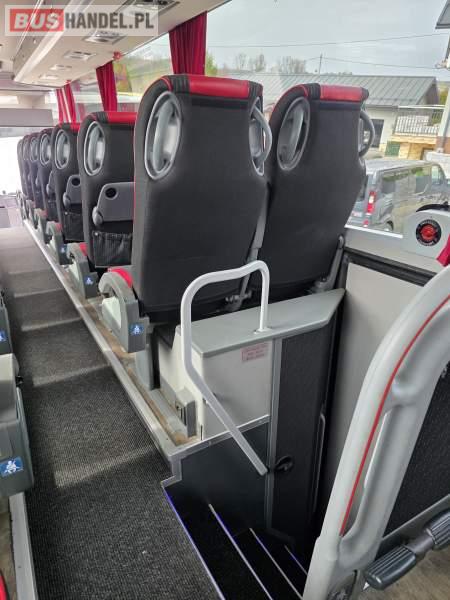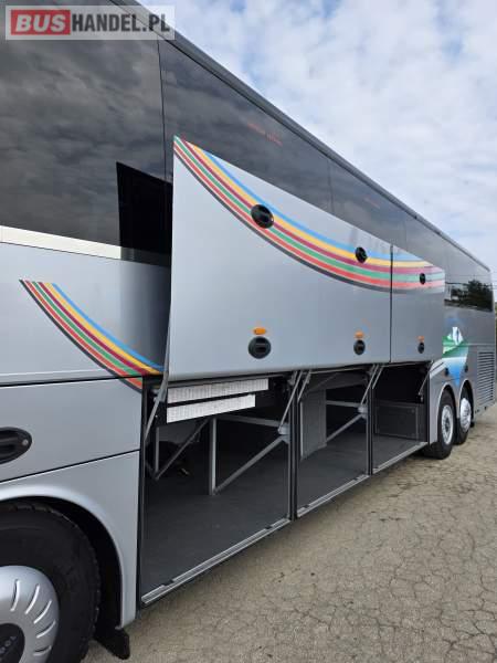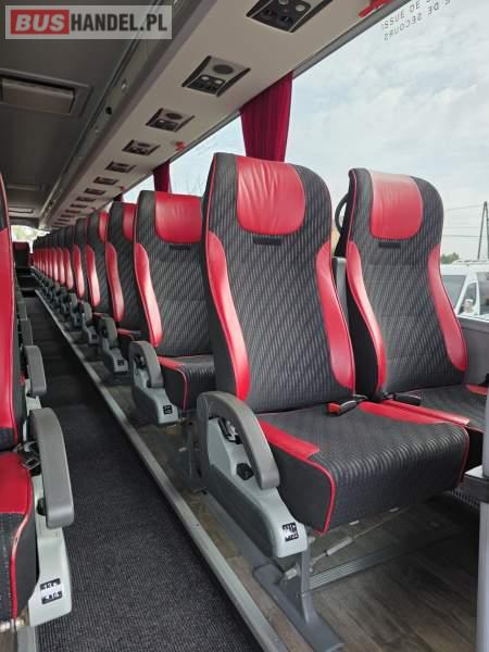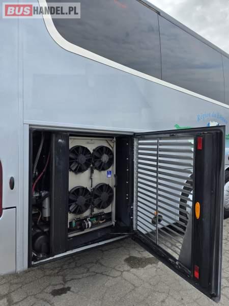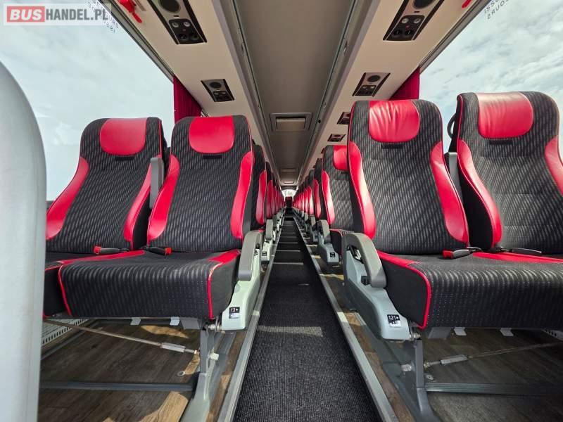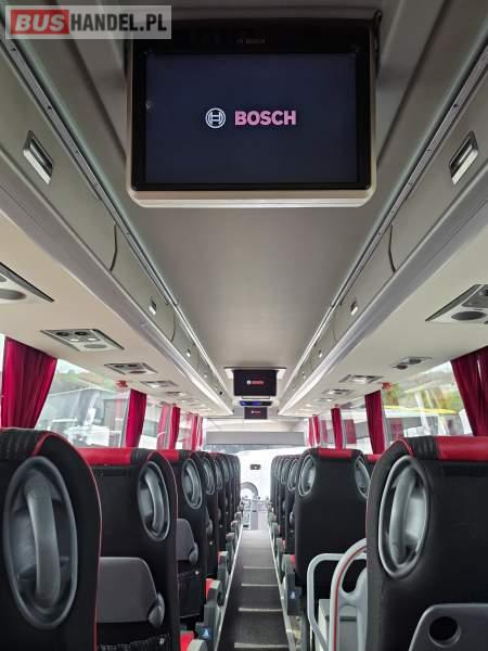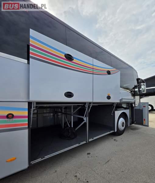 : WC, lodówka, caffebar, kabina sypialna, fotele odchylane, oświetlenie indywidualne, nawiewy dyszowe, siateczki, ABS, ASR, tempomat, retarder, podnóżki, stoliczki, mikrofon, klimatyzacja, radio, sejf, regulacja wysokości nadwozia, centralny zamek, podwójne szyby boczne, wspomaganie kierownicy, elektryczne lusterka, fotele odchylane i rozsuwane, DVD, ogrzewanie stacjonarne, hak holowniczy, ESP