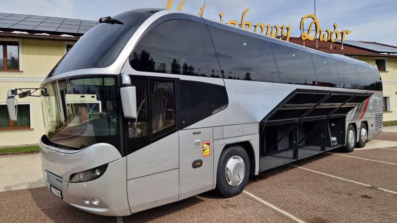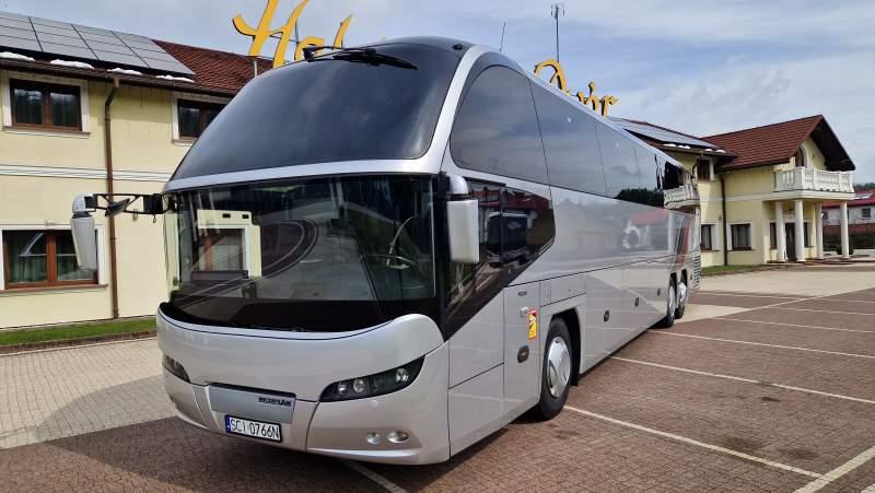 *** Na sprzedaż bardzo zadbany i mocno doinwestowany autokar Neoplan Cityliner L * Rok produkcji: 2018 * Ilość miejsc: 59+2+1 * Oryginalny przebieg: 445 000 km * Automatyczna 12-biegowa skrzynia biegów Autobus bardzo bogato wyposażony: - Xenon - Aktywny tempomat - Ogrzewana toaleta - Trzy monitory - Lodówka - Duża przetwornica 220V - Dodatkowe rozruchowe akumulatory - Gniazdka USB do ładowania dla pasażerów - Kamera cofania - Kamera na środkowe wejście - WC - Oryginalne ciemne szyby Autobus absolutnie niewymagający nakładów finansowych - gotowy do dalszej eksploatacji!!! Historia serwisowa w MAN do 399 000 km (łącznie z akcją serwisową na wymianę panewek) Po więcej informacji zapraszam do kontaktu telefonicznego Sprzedający: