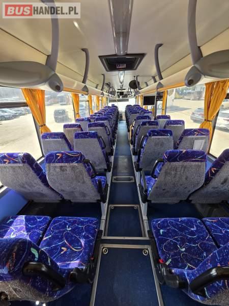 : lodówka, fotele odchylane, oświetlenie indywidualne, nawiewy dyszowe, siateczki, ABS, ASR, tempomat, retarder, podnóżki, stoliczki, mikrofon, klimatyzacja, radio, regulacja wysokości nadwozia, centralny zamek, podwójne szyby boczne, wspomaganie kierownicy, elektryczne lusterka, ogrzewanie stacjonarne