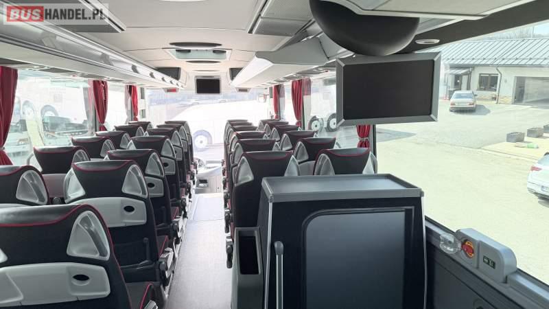 : klimatyzacja, WC, lodówka, kabina sypialna, oświetlenie indywidualne, nawiewy dyszowe, fotele odchylane, podnóżki, stoliczki, siateczki, ABS, ASR, tempomat, retarder, mikrofon, radio, fotele odchylane i rozsuwane, sejf, regulacja wysokości nadwozia, centralny zamek, podwójne szyby boczne, wspomaganie kierownicy, elektryczne lusterka, ogrzewanie stacjonarne, DVD, ESP