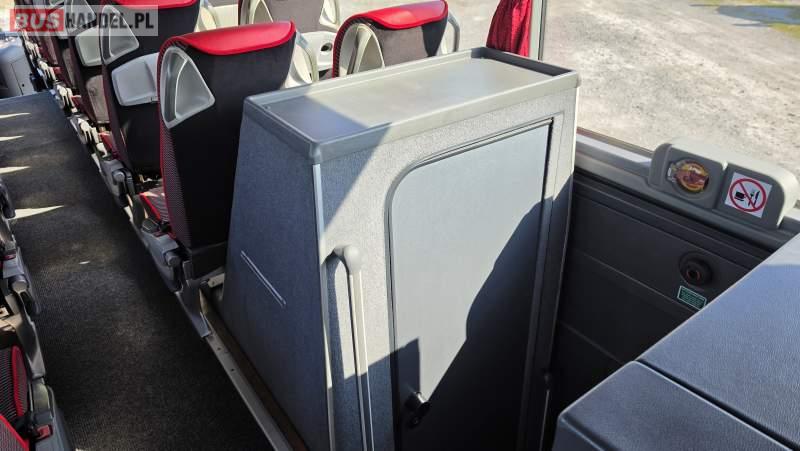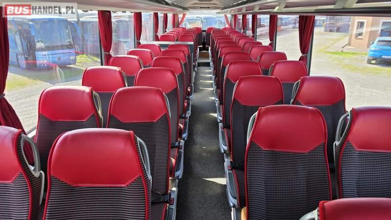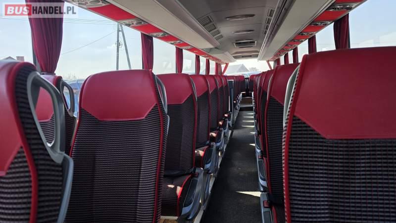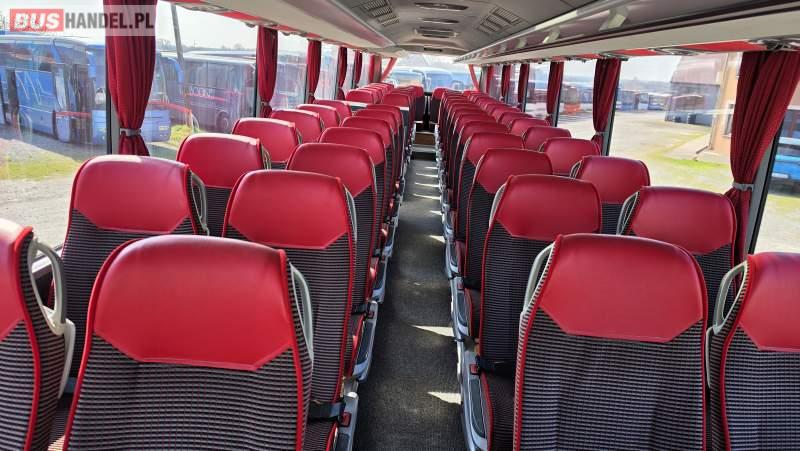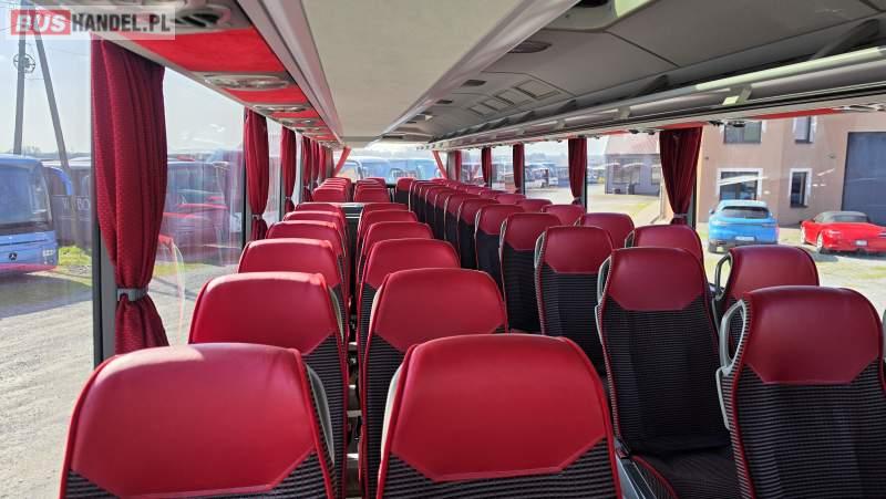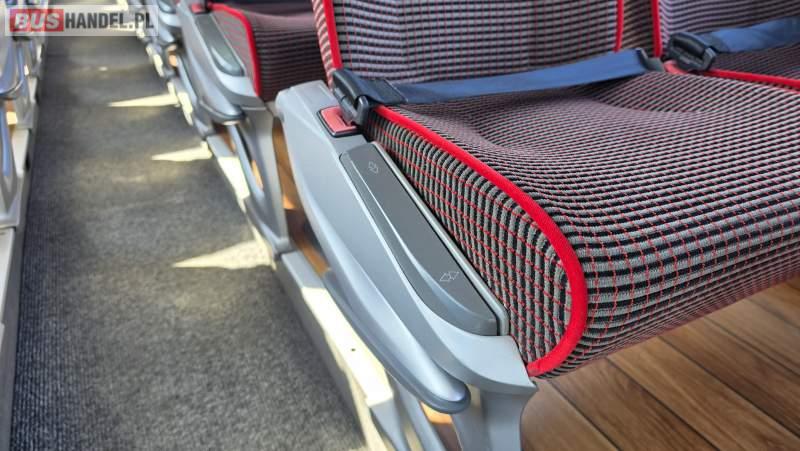 : video, WC, lodówka, caffebar, kabina sypialna, oświetlenie indywidualne, nawiewy dyszowe, siateczki, ABS, ASR, tempomat, retarder, CD, podnóżki, stoliczki, mikrofon, klimatyzacja, radio, sejf, regulacja wysokości nadwozia, centralny zamek, podwójne szyby boczne, wspomaganie kierownicy, elektryczne lusterka, aluminiowe felgi, fotele odchylane i rozsuwane, DVD, ogrzewanie stacjonarne, ESP