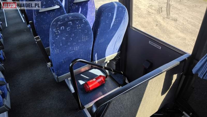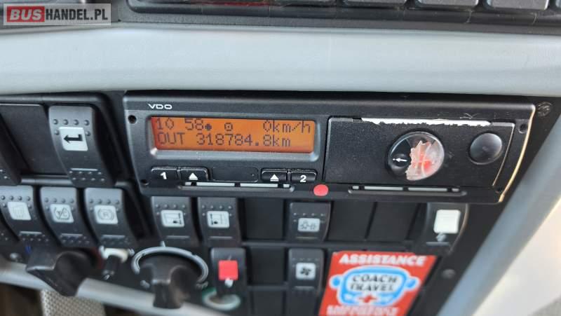 : klimatyzacja, lodówka, oświetlenie indywidualne, nawiewy dyszowe, fotele odchylane, podnóżki, ABS, ASR, tempomat, retarder, CD, radio, regulacja wysokości nadwozia, centralny zamek, podwójne szyby boczne, wspomaganie kierownicy, elektryczne lusterka, ogrzewanie stacjonarne