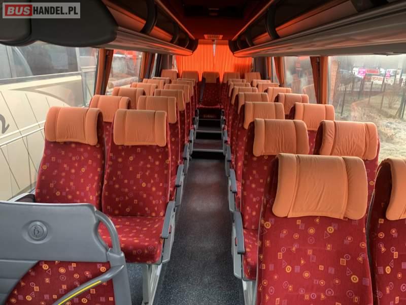 : lodówka, fotele odchylane, oświetlenie indywidualne, nawiewy dyszowe, siateczki, ABS, tempomat, retarder, CD, mikrofon, klimatyzacja, radio, regulacja wysokości nadwozia, podwójne szyby boczne, wspomaganie kierownicy, DVD, ogrzewanie stacjonarne, hak holowniczy, ESP