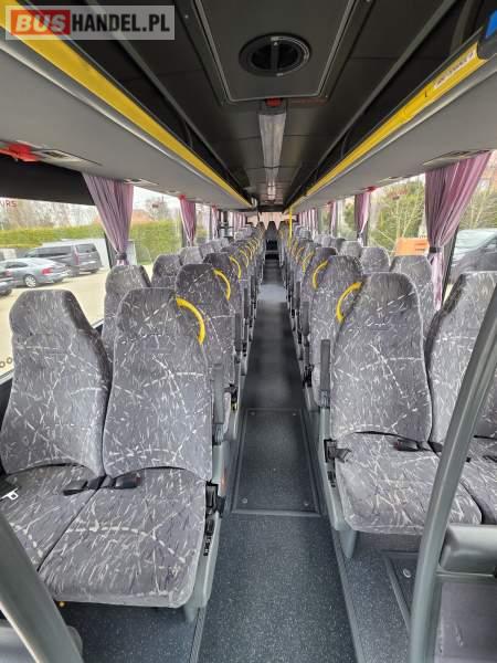 : lodówka, fotele odchylane, oświetlenie indywidualne, nawiewy dyszowe, siateczki, ABS, ASR, tempomat, retarder, podnóżki, stoliczki, mikrofon, klimatyzacja, radio, regulacja wysokości nadwozia, centralny zamek, podwójne szyby boczne, wspomaganie kierownicy, elektryczne lusterka, ogrzewanie stacjonarne