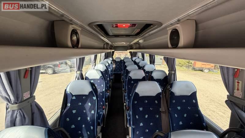 : oświetlenie indywidualne, nawiewy dyszowe, siateczki, ABS, ASR, tempomat, retarder, podnóżki, stoliczki, mikrofon, klimatyzacja, radio, regulacja wysokości nadwozia, centralny zamek, podwójne szyby boczne, wspomaganie kierownicy, elektryczne lusterka, fotele odchylane i rozsuwane, DVD, ogrzewanie stacjonarne