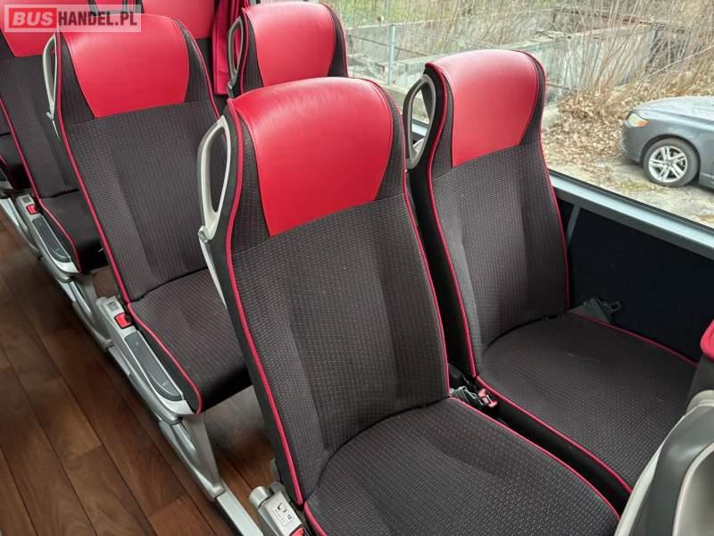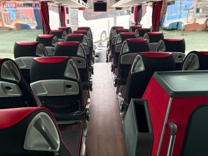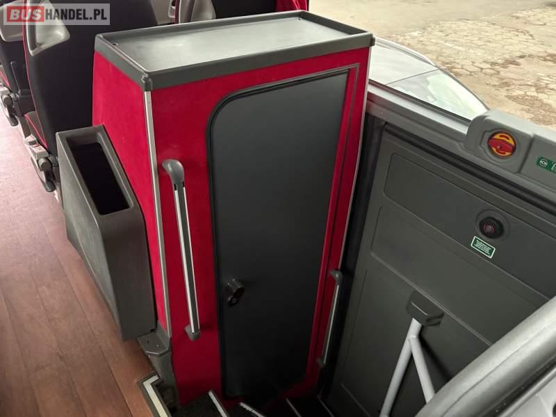 : video, WC, lodówka, caffebar, oświetlenie indywidualne, nawiewy dyszowe, siateczki, ABS, ASR, tempomat, retarder, CD, podnóżki, stoliczki, mikrofon, klimatyzacja, radio, regulacja wysokości nadwozia, centralny zamek, podwójne szyby boczne, wspomaganie kierownicy, elektryczne lusterka, aluminiowe felgi, fotele odchylane i rozsuwane, DVD, ogrzewanie stacjonarne, ESP
