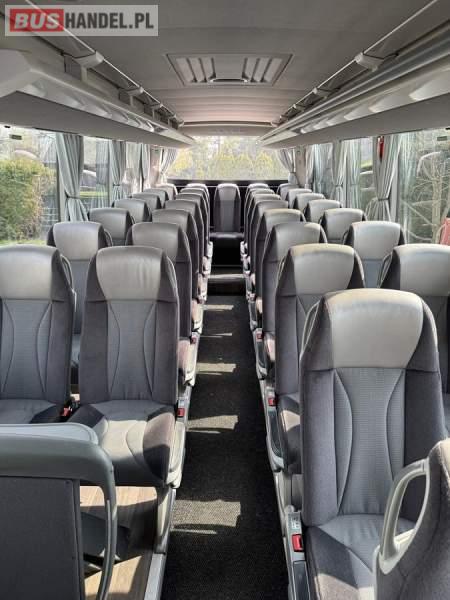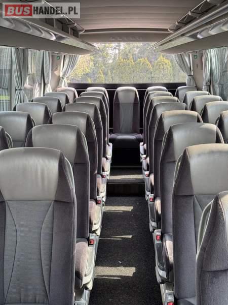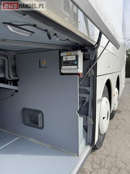: WC, lodówka, kabina sypialna, fotele odchylane, oświetlenie indywidualne, nawiewy dyszowe, siateczki, tempomat, retarder, podnóżki, stoliczki, mikrofon, klimatyzacja, radio, sejf, regulacja wysokości nadwozia, centralny zamek, podwójne szyby boczne, wspomaganie kierownicy, elektryczne lusterka, fotele odchylane i rozsuwane, DVD, ogrzewanie stacjonarne, ESP
