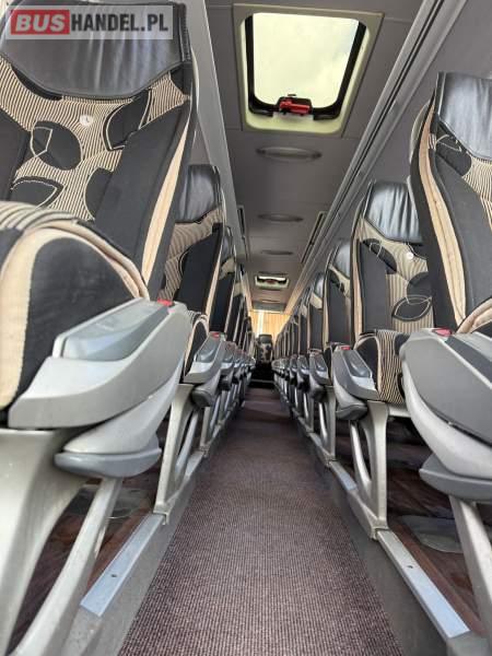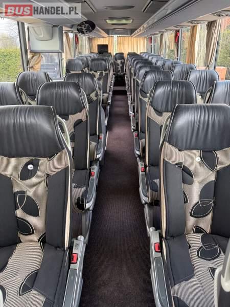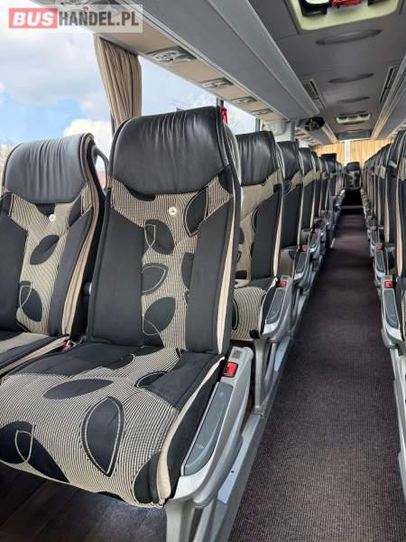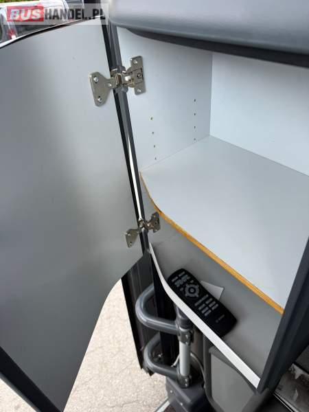 : WC, lodówka, kabina sypialna, fotele odchylane, oświetlenie indywidualne, nawiewy dyszowe, siateczki, ABS, ASR, tempomat, retarder, podnóżki, stoliczki, mikrofon, klimatyzacja, radio, sejf, regulacja wysokości nadwozia, centralny zamek, podwójne szyby boczne, wspomaganie kierownicy, elektryczne lusterka, fotele odchylane i rozsuwane, ogrzewanie stacjonarne, ESP