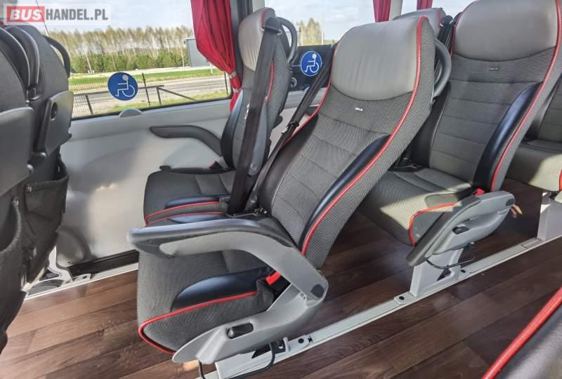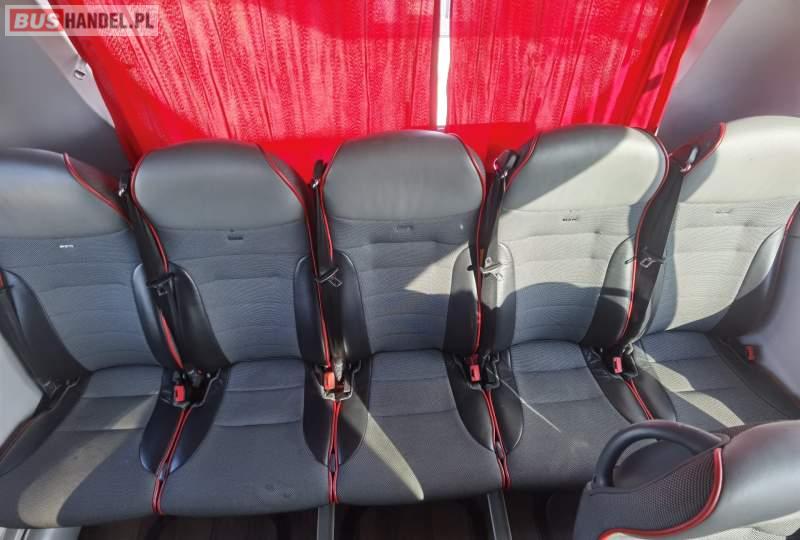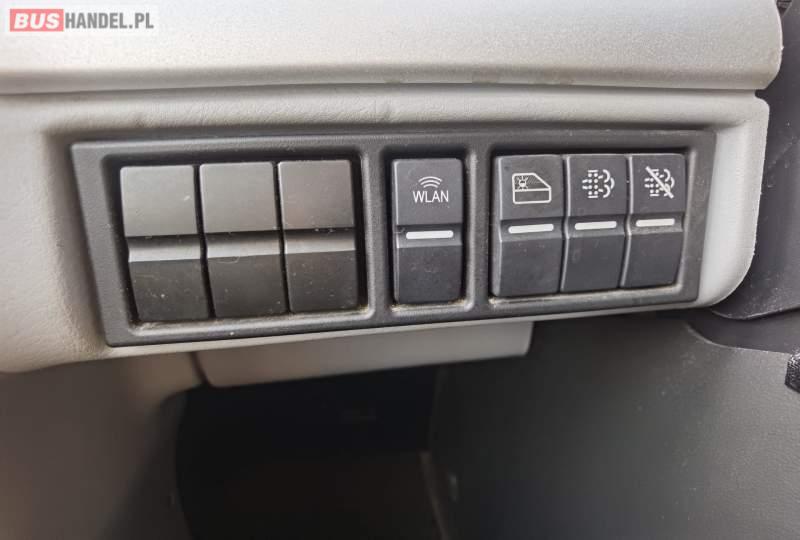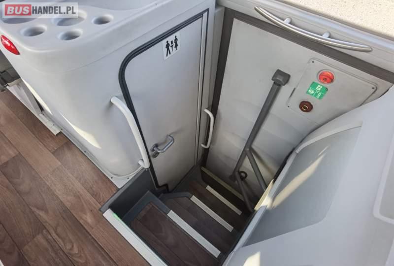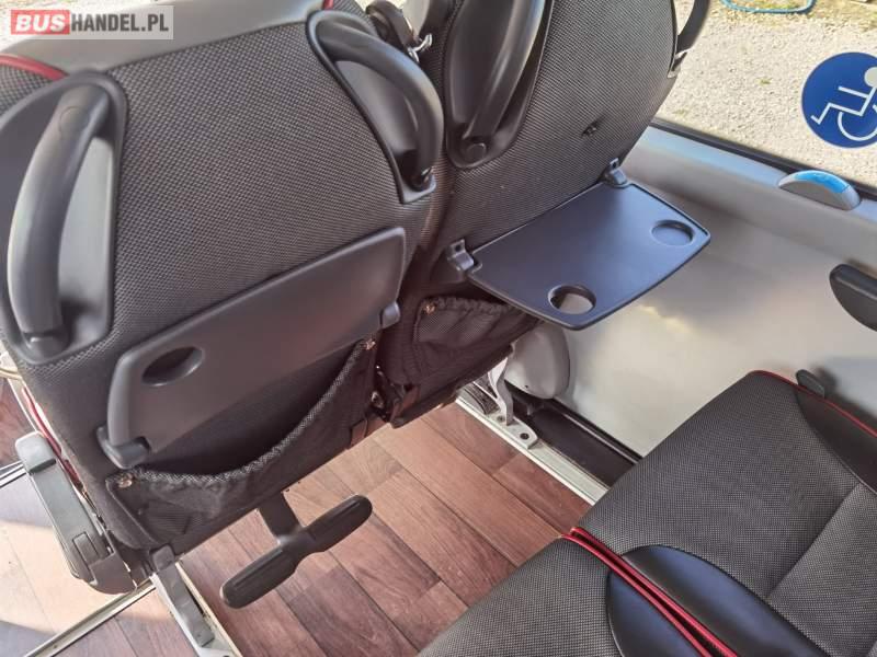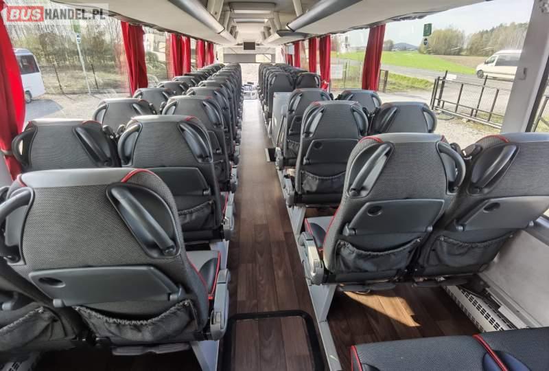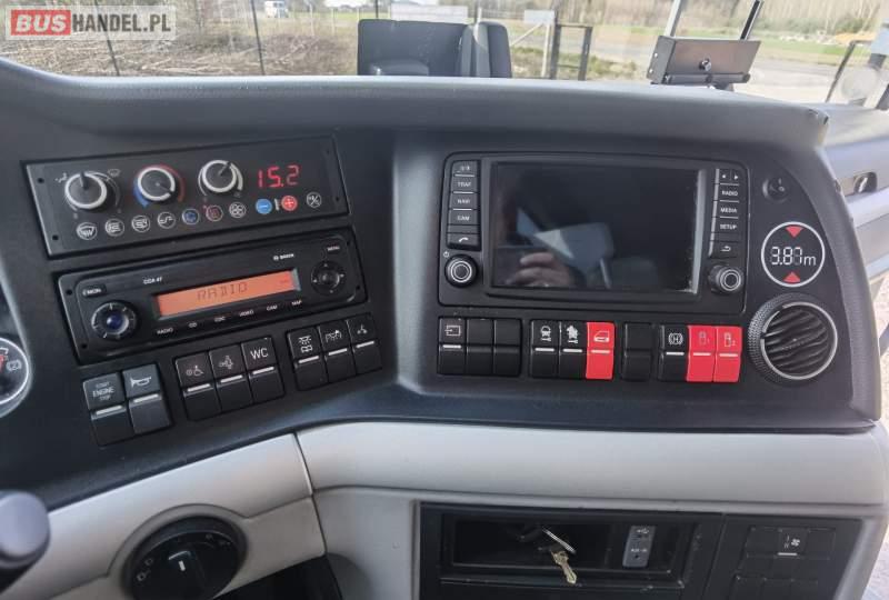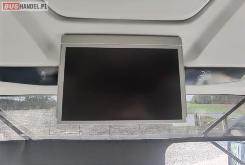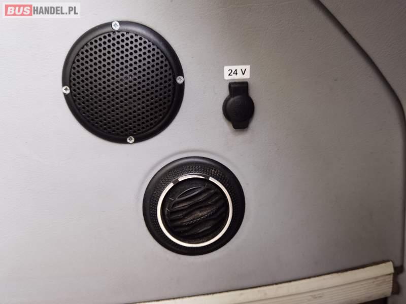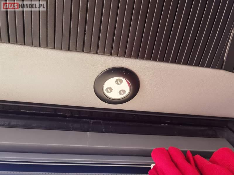 : video, WC, lodówka, fotele odchylane, oświetlenie indywidualne, siateczki, ABS, ASR, tempomat, retarder, nawigacja, CD, stoliczki, mikrofon, klimatyzacja, radio, regulacja wysokości nadwozia, centralny zamek, podwójne szyby boczne, wspomaganie kierownicy, elektryczne lusterka, aluminiowe felgi, DVD, ogrzewanie stacjonarne, ESP