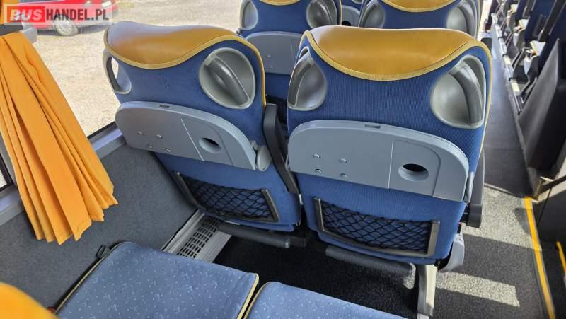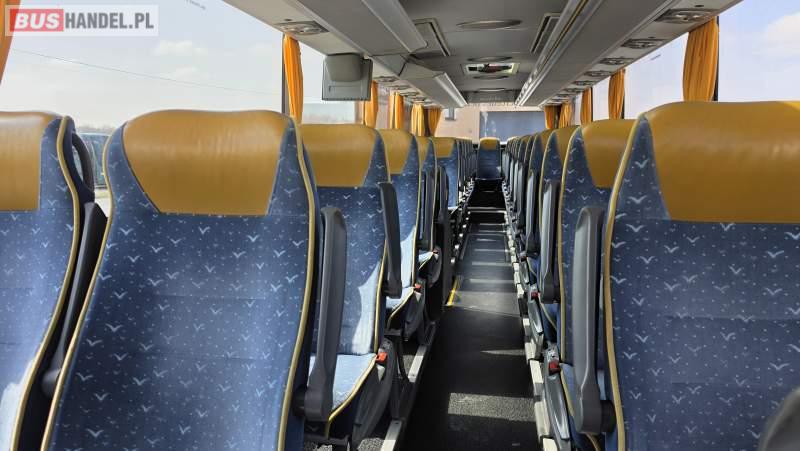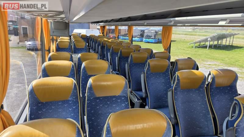 : video, WC, lodówka, caffebar, kabina sypialna, oświetlenie indywidualne, nawiewy dyszowe, siateczki, ABS, ASR, tempomat, retarder, CD, podnóżki, stoliczki, mikrofon, klimatyzacja, radio, regulacja wysokości nadwozia, centralny zamek, podwójne szyby boczne, wspomaganie kierownicy, elektryczne lusterka, fotele odchylane i rozsuwane, DVD, ogrzewanie stacjonarne, ESP