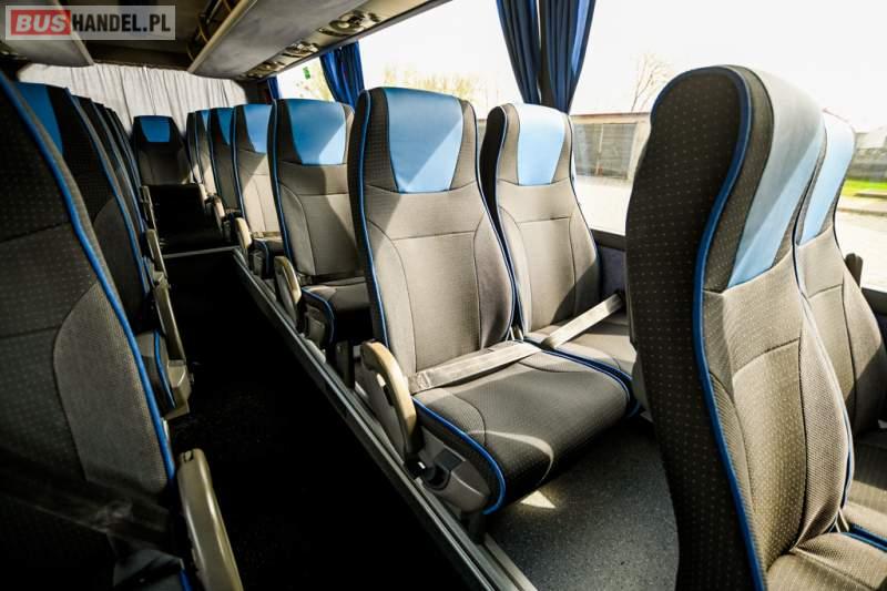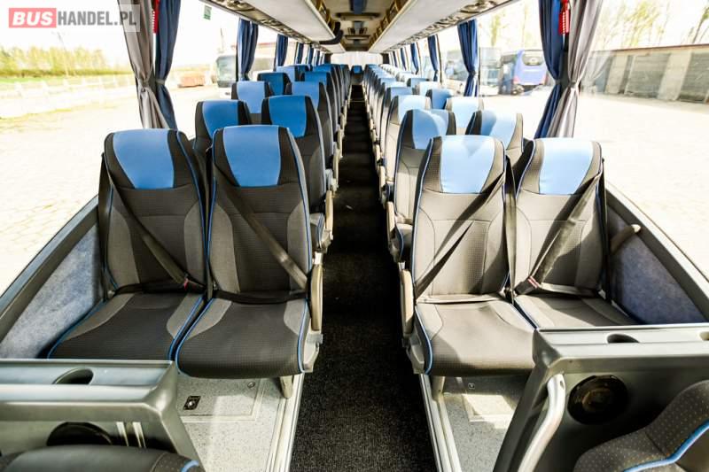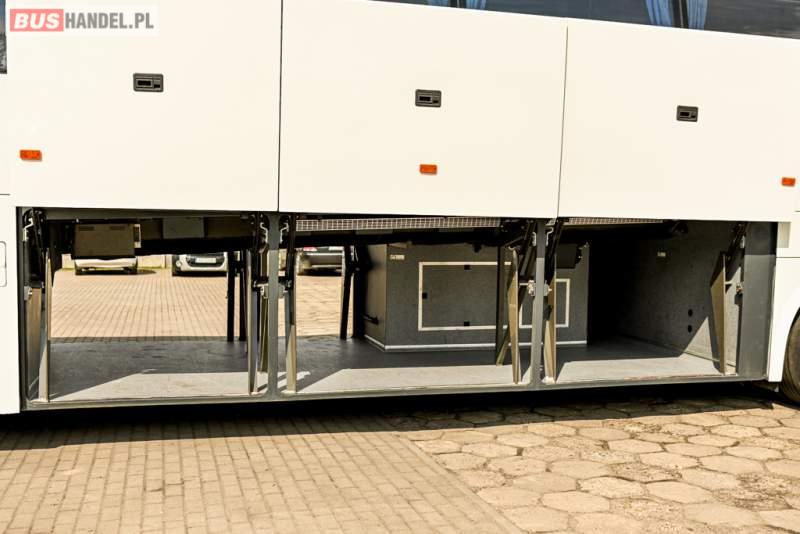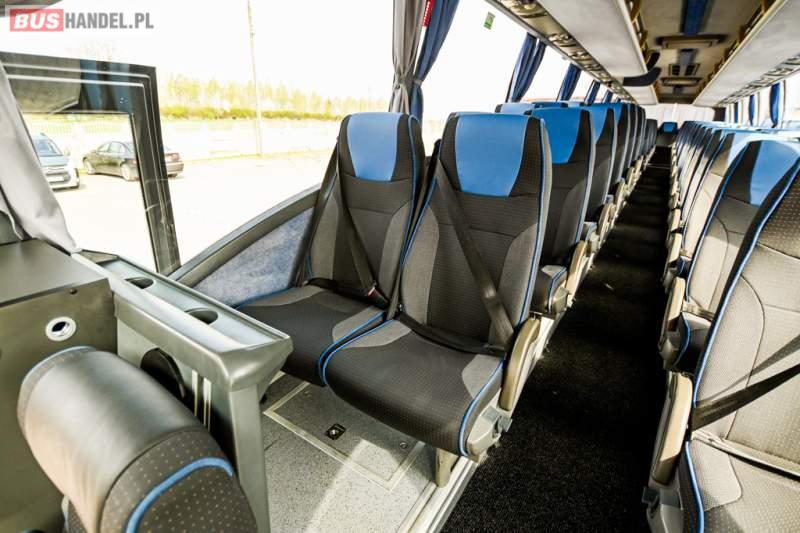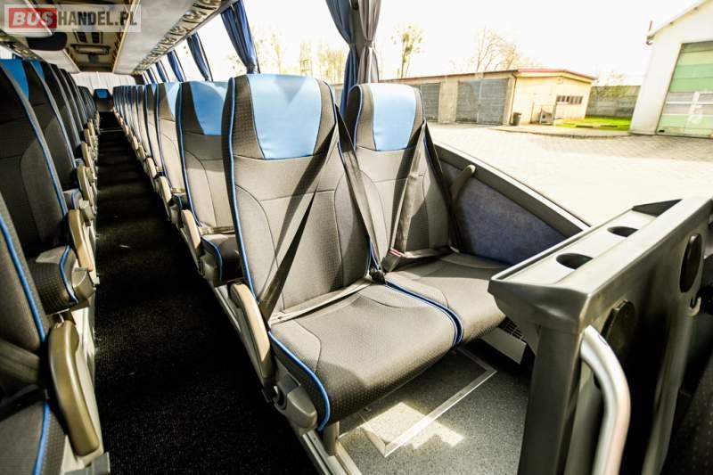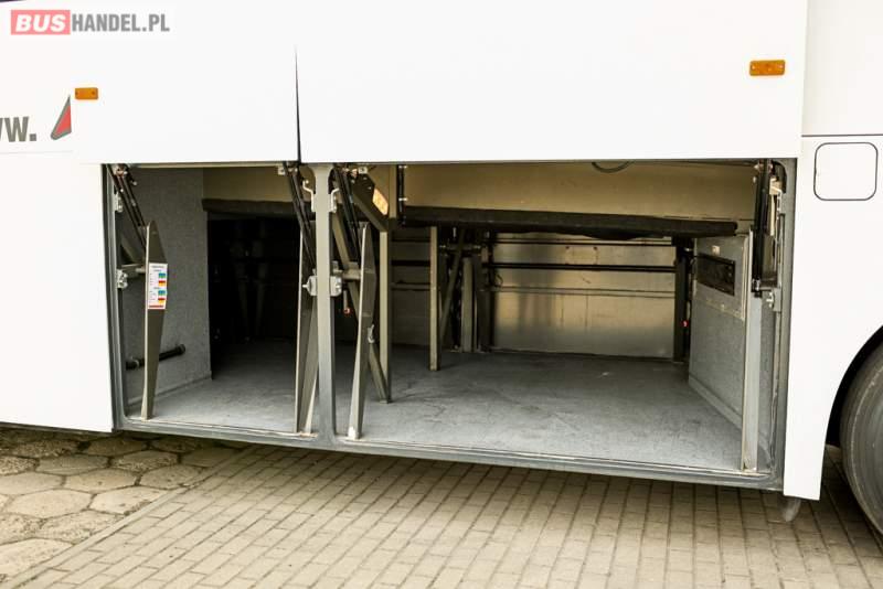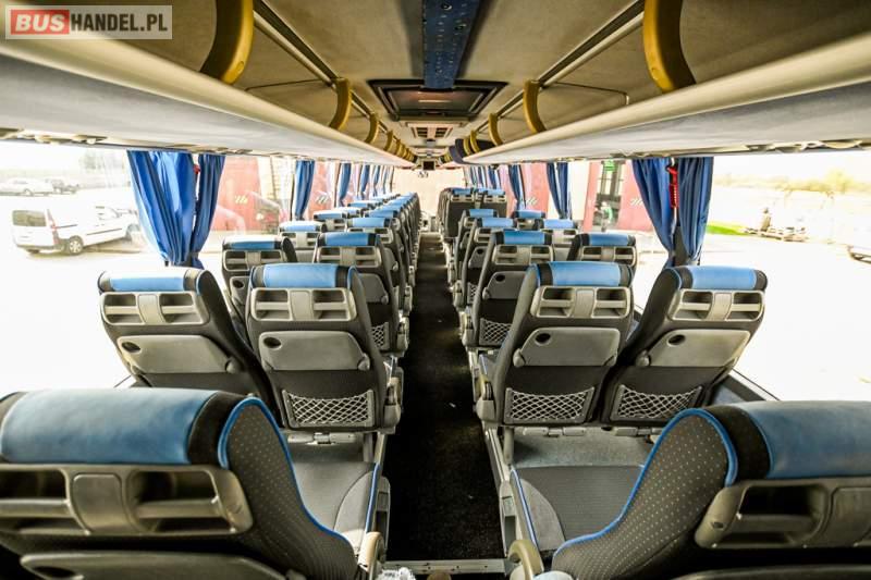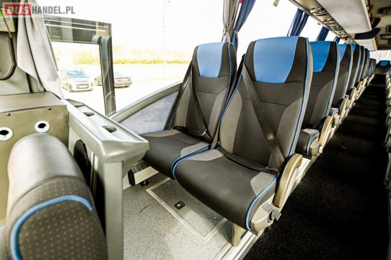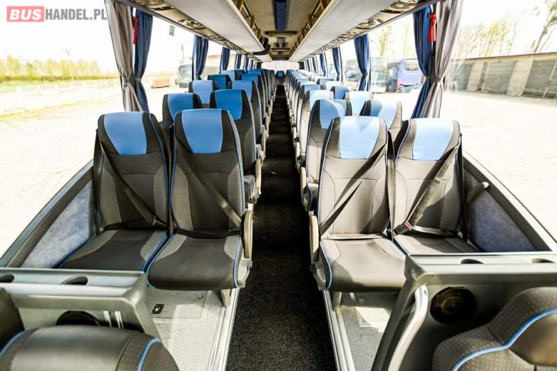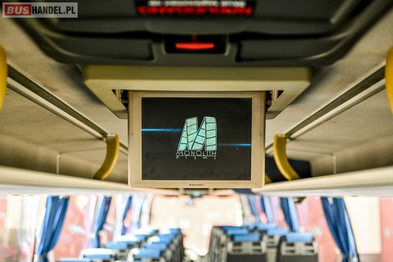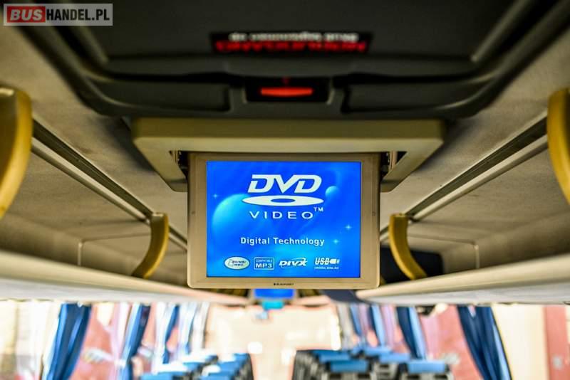 : WC, lodówka, caffebar, oświetlenie indywidualne, nawiewy dyszowe, siateczki, ABS, ASR, tempomat, retarder, CD, podnóżki, stoliczki, mikrofon, klimatyzacja, radio, wyświetlacz matrix, sejf, regulacja wysokości nadwozia, centralny zamek, podwójne szyby boczne, wspomaganie kierownicy, elektryczne lusterka, fotele odchylane i rozsuwane, DVD, ogrzewanie stacjonarne, hak holowniczy, ESP