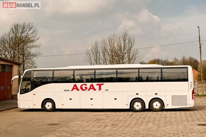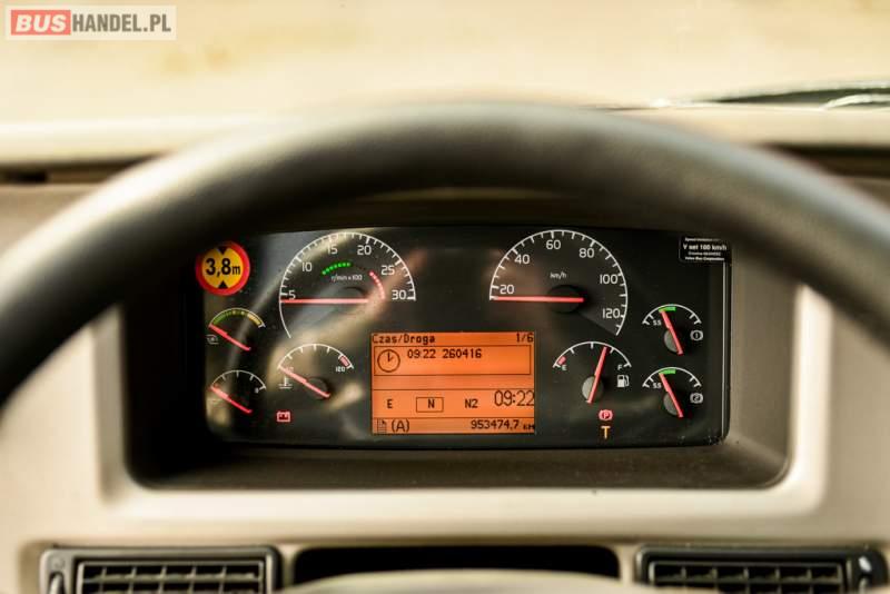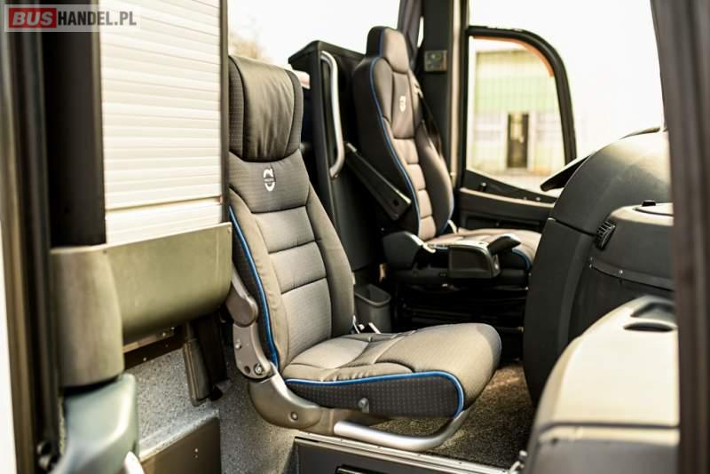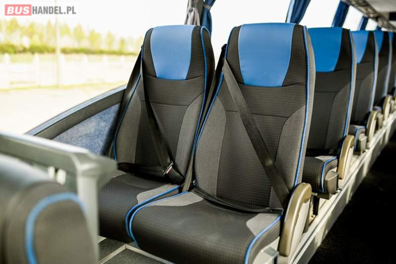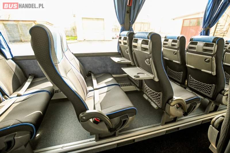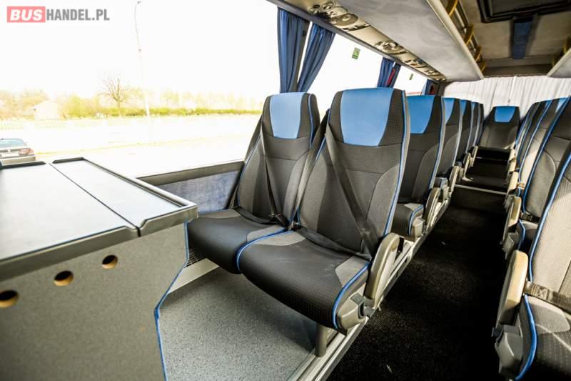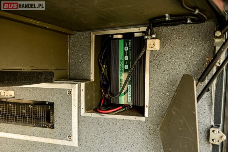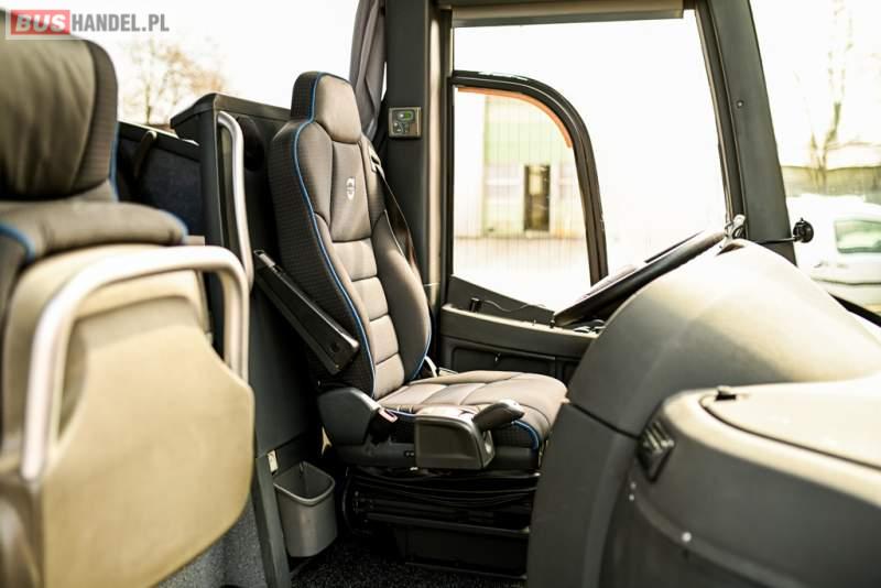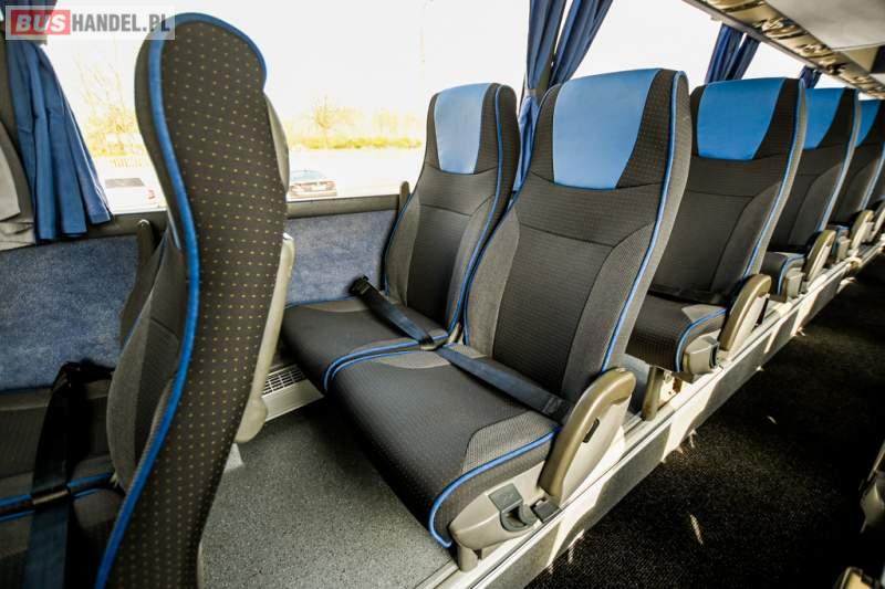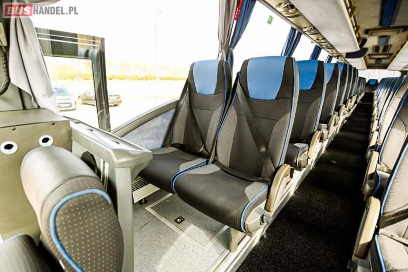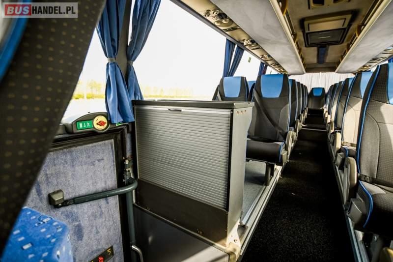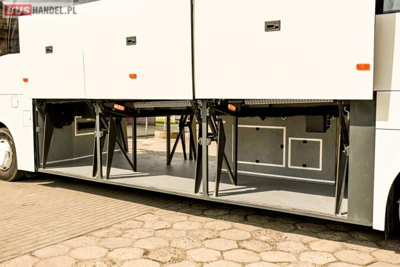 : WC, lodówka, caffebar, oświetlenie indywidualne, nawiewy dyszowe, siateczki, ABS, ASR, tempomat, retarder, CD, podnóżki, stoliczki, mikrofon, klimatyzacja, radio, wyświetlacz matrix, sejf, regulacja wysokości nadwozia, centralny zamek, podwójne szyby boczne, wspomaganie kierownicy, elektryczne lusterka, fotele odchylane i rozsuwane, DVD, ogrzewanie stacjonarne, hak holowniczy, ESP