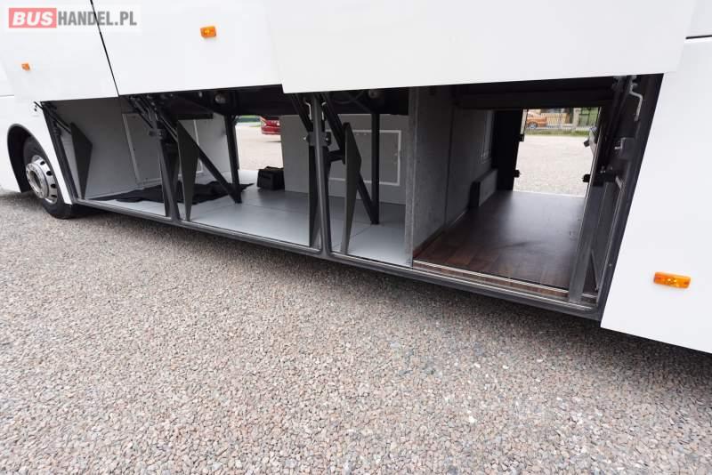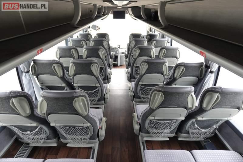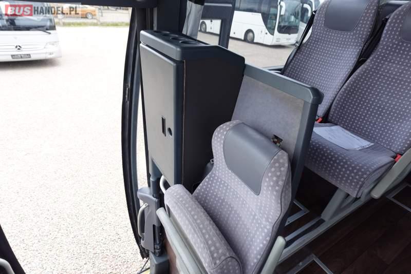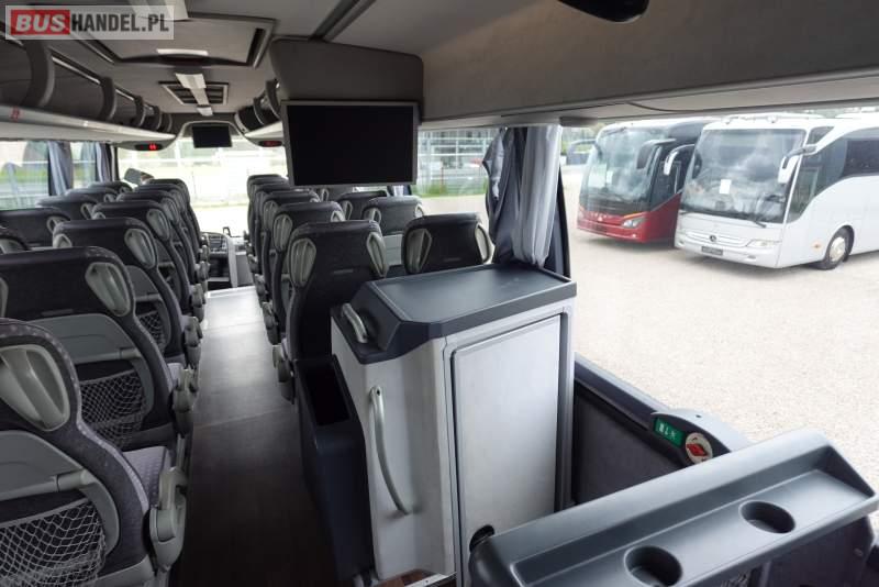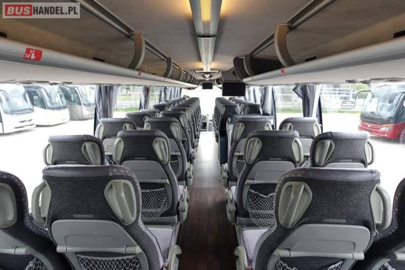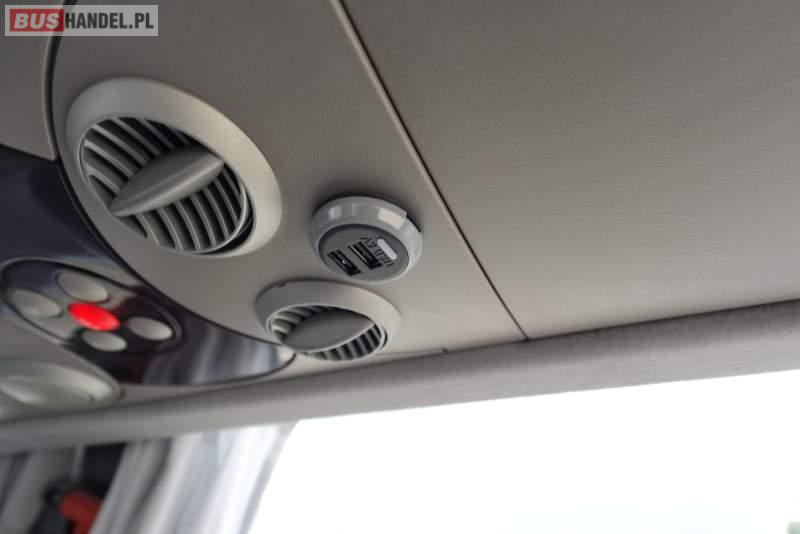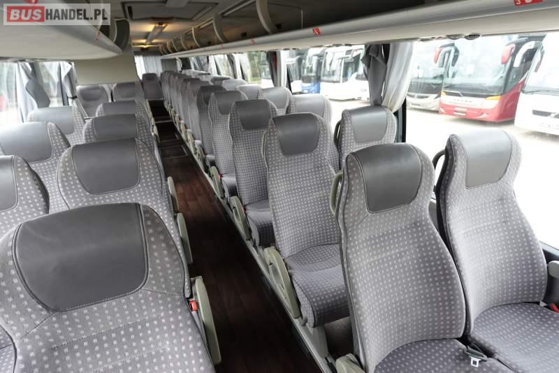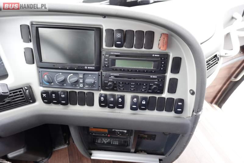 : video, WC, lodówka, kabina sypialna, oświetlenie indywidualne, nawiewy dyszowe, siateczki, ABS, ASR, tempomat, retarder, CD, podnóżki, stoliczki, mikrofon, klimatyzacja, radio, regulacja wysokości nadwozia, centralny zamek, podwójne szyby boczne, wspomaganie kierownicy, elektryczne lusterka, fotele odchylane i rozsuwane, DVD, ogrzewanie stacjonarne, ESP