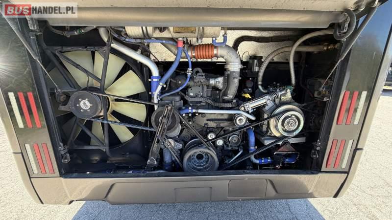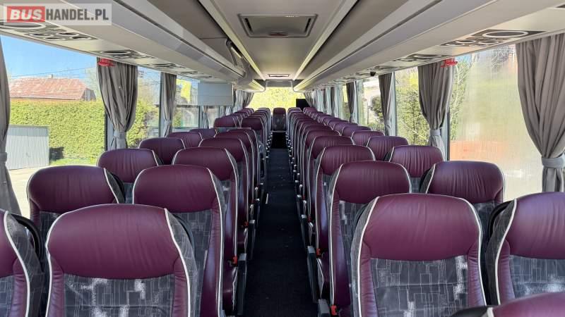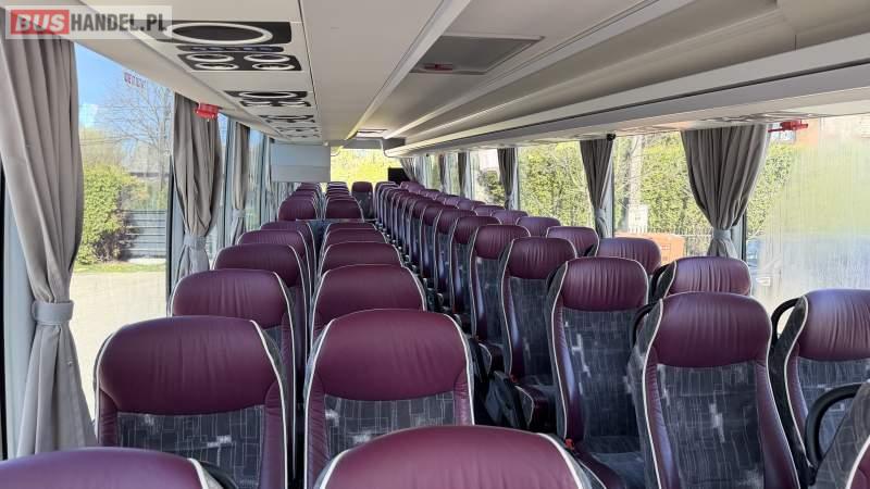 : WC, lodówka, kabina sypialna, fotele odchylane, oświetlenie indywidualne, nawiewy dyszowe, siateczki, ABS, ASR, tempomat, retarder, podnóżki, stoliczki, mikrofon, klimatyzacja, radio, regulacja wysokości nadwozia, centralny zamek, podwójne szyby boczne, wspomaganie kierownicy, elektryczne lusterka, fotele odchylane i rozsuwane, ogrzewanie stacjonarne, ESP