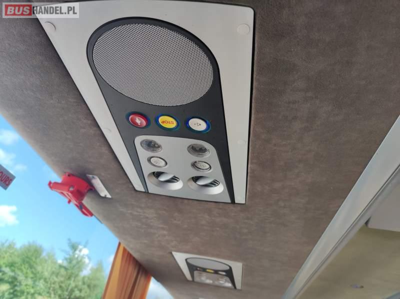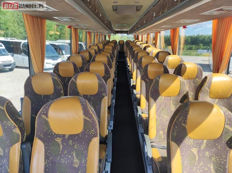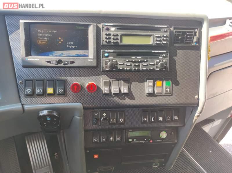 : WC, lodówka, caffebar, kabina sypialna, fotele odchylane, oświetlenie indywidualne, nawiewy dyszowe, siateczki, ABS, ASR, tempomat, retarder, CD, podnóżki, stoliczki, klimatyzacja, radio, sejf, centralny zamek, podwójne szyby boczne, wspomaganie kierownicy, elektryczne lusterka, aluminiowe felgi, fotele odchylane i rozsuwane, ogrzewanie stacjonarne, hak holowniczy
