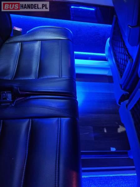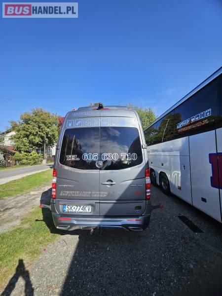 Mercedes-Benz 519, luksusowy mini-autokar (23+1) Nowoczesny, bardzo komfortowy autobus z silnikiem 3. 0 V6 (190 KM), Euro 6, z przebiegiem 179 930 km, automatyczna skrzynia biegów, pierwszy właściciel. Najważniejsze atuty: Zabudowa Auto Cuby – konfiguracja 23+1, pojemna lodówka, ekspres do kawy/podgrzewacz wody (Cafe Bar) Przedłużany i powiększony bagażnik + kufry boczne Tylna kanapa przesuwana i bagażnik o 80 cm większy Skórzane, przesuwane fotele (z możliwością przesunięcia kanapy do środka korytarza) – pasy biodrowe na wszystkich siedzeniach Zawieszenie tylne na poduszkach. Klimatyzacja strefowa 11 kW Webasto + ogrzewanie postojowe oraz konwektorowe System audio/video/DVD, mikrofon, GPS, Pakiet AMG Perfekcyjny stan techniczny i wizualny – użytkowany wyłącznie w turystyce, garażowany TELEFON ENG: 885 440 444 Sprzedający: