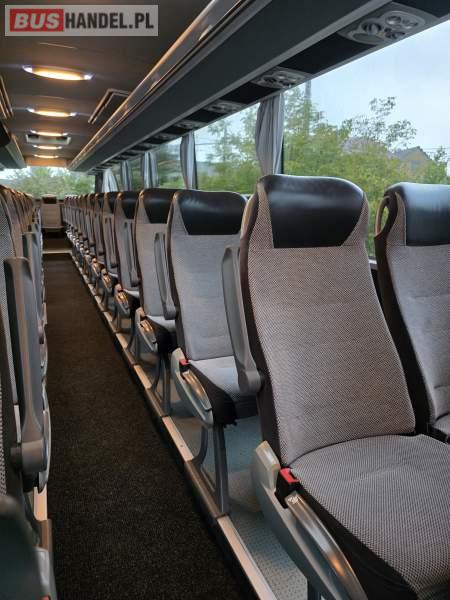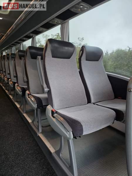 : lodówka, kabina sypialna, oświetlenie indywidualne, nawiewy dyszowe, siateczki, ABS, ASR, tempomat, retarder, podnóżki, stoliczki, mikrofon, klimatyzacja, radio, regulacja wysokości nadwozia, centralny zamek, podwójne szyby boczne, wspomaganie kierownicy, elektryczne lusterka, fotele odchylane i rozsuwane, DVD, ogrzewanie stacjonarne, ESP
