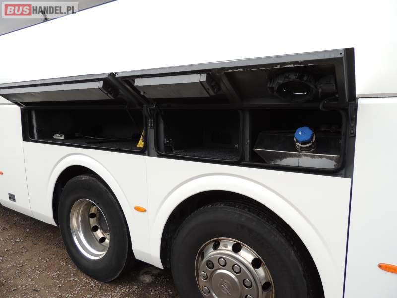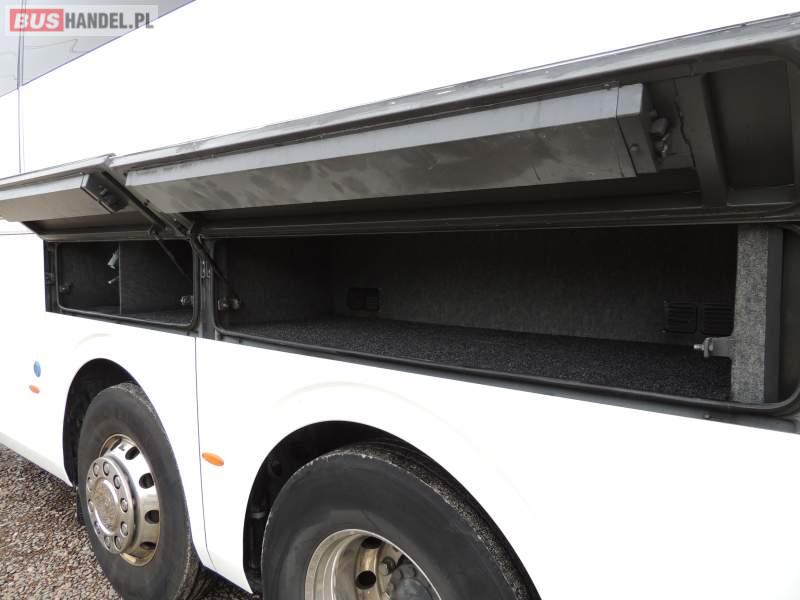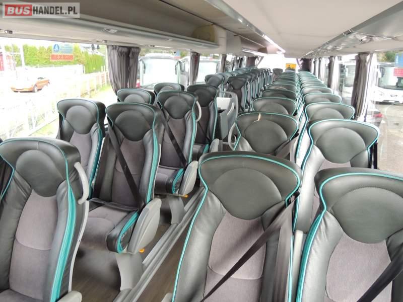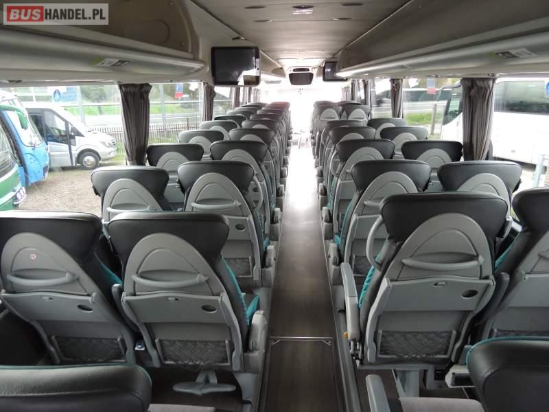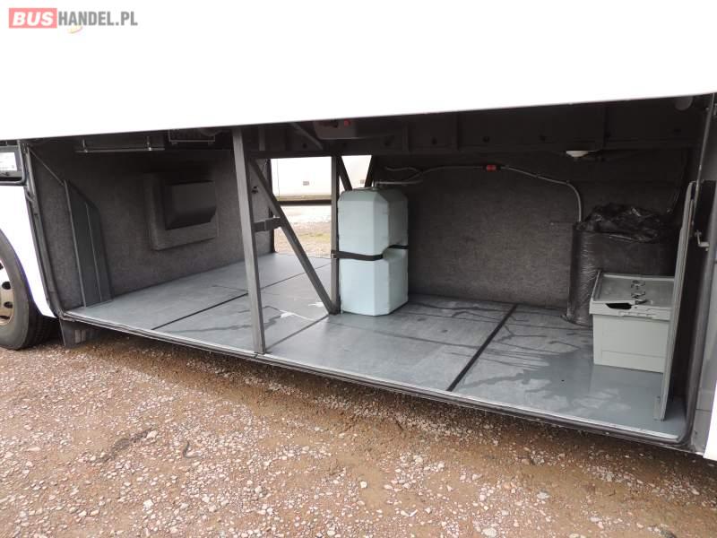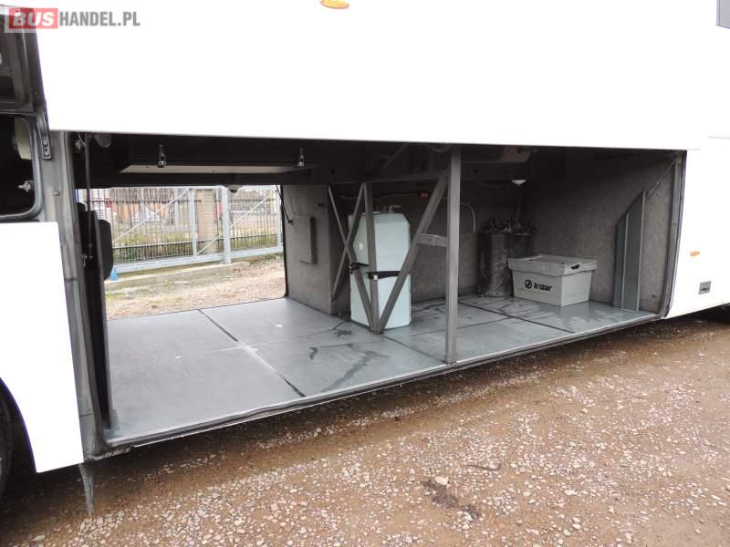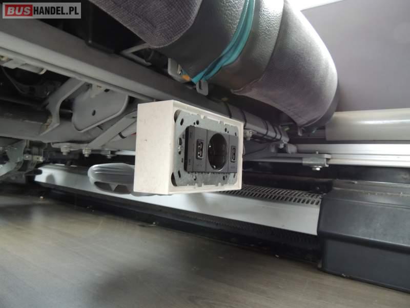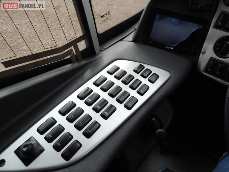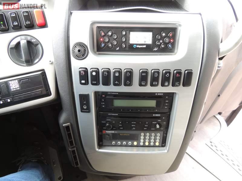 : klimatyzacja, video, WC, lodówka, oświetlenie indywidualne, nawiewy dyszowe, podnóżki, stoliczki, siateczki, ABS, ASR, tempomat, retarder, nawigacja, CD, mikrofon, radio, fotele odchylane i rozsuwane, rampa dla inwalidów, regulacja wysokości nadwozia, centralny zamek, podwójne szyby boczne, wspomaganie kierownicy, aluminiowe felgi, elektryczne lusterka, ogrzewanie stacjonarne, DVD, ESP