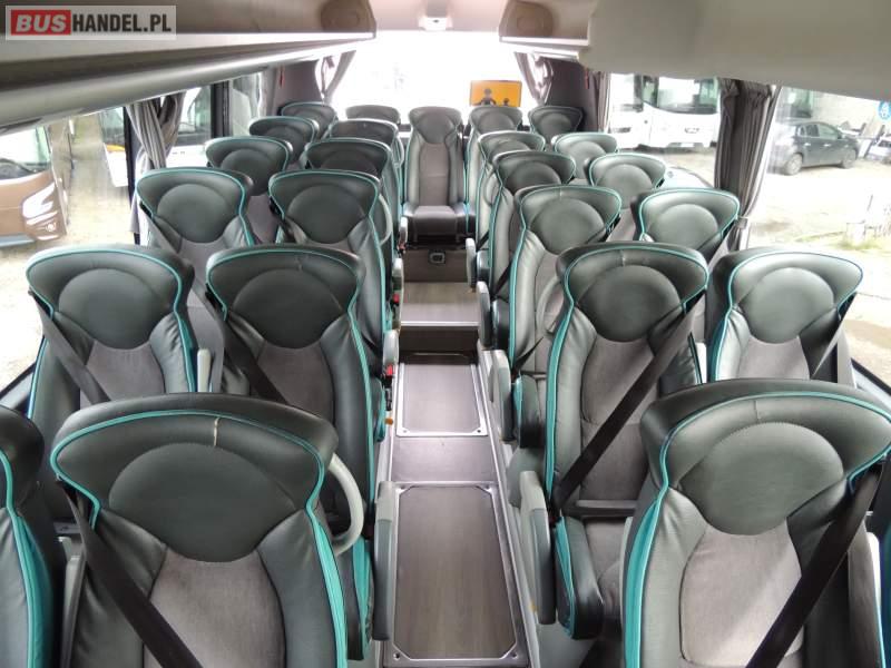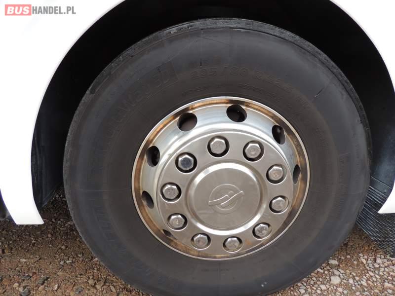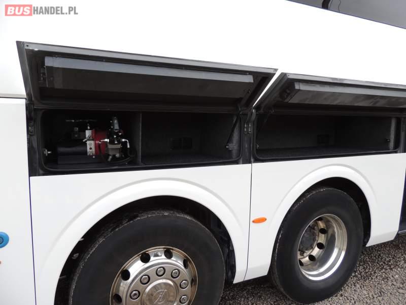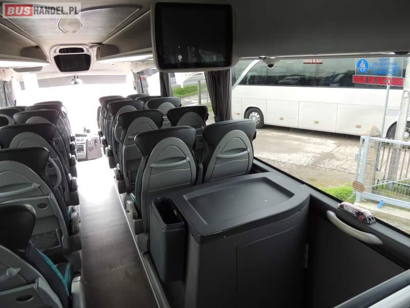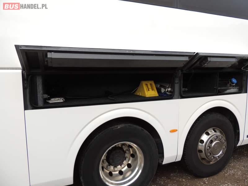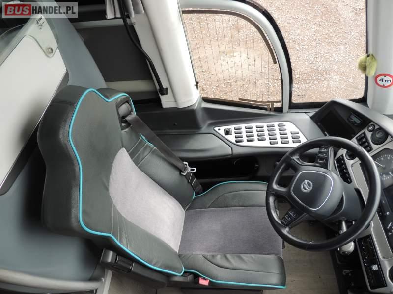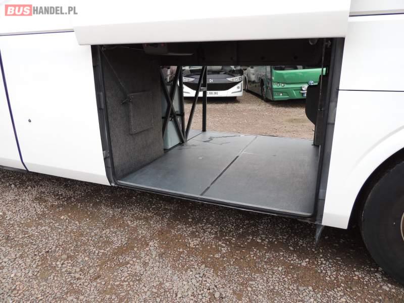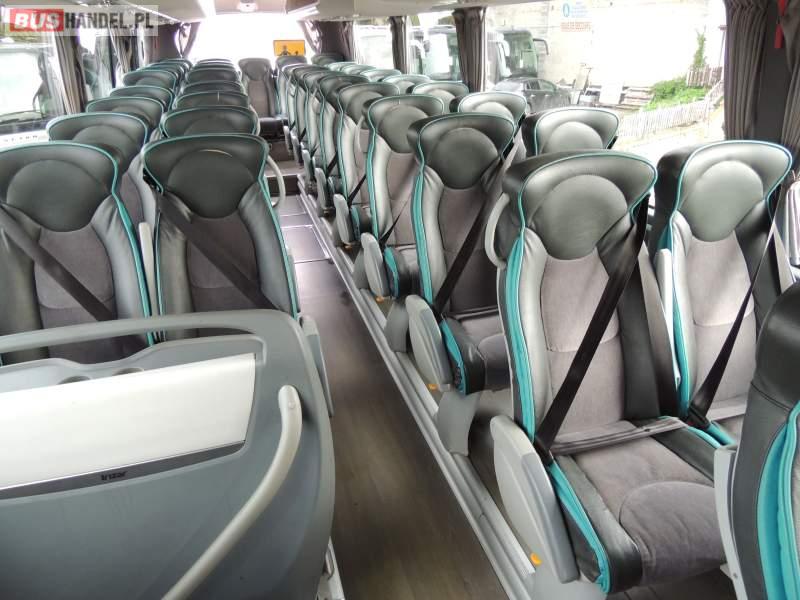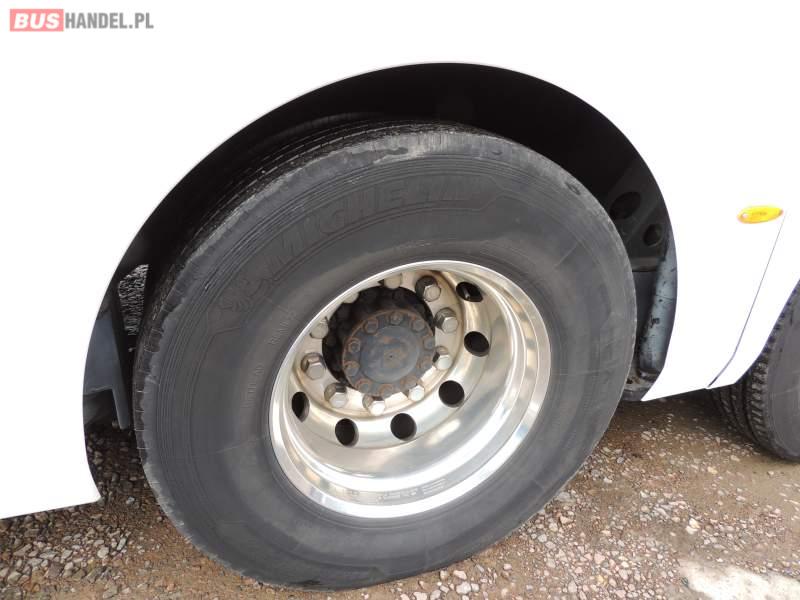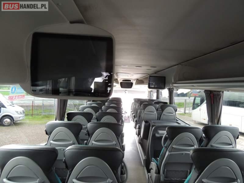 : klimatyzacja, video, WC, lodówka, oświetlenie indywidualne, nawiewy dyszowe, podnóżki, stoliczki, siateczki, ABS, ASR, tempomat, retarder, nawigacja, CD, mikrofon, radio, fotele odchylane i rozsuwane, rampa dla inwalidów, regulacja wysokości nadwozia, centralny zamek, podwójne szyby boczne, wspomaganie kierownicy, aluminiowe felgi, elektryczne lusterka, ogrzewanie stacjonarne, DVD, ESP