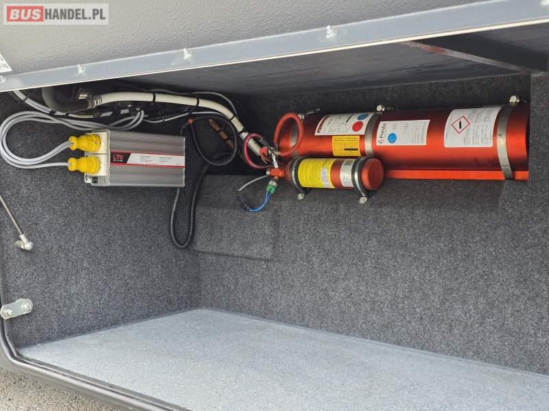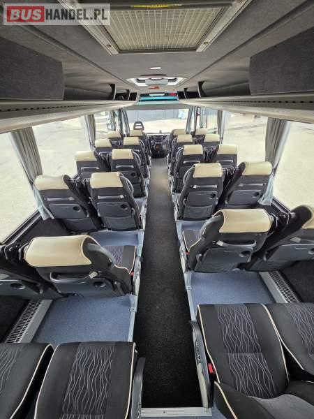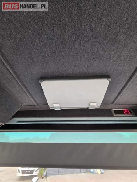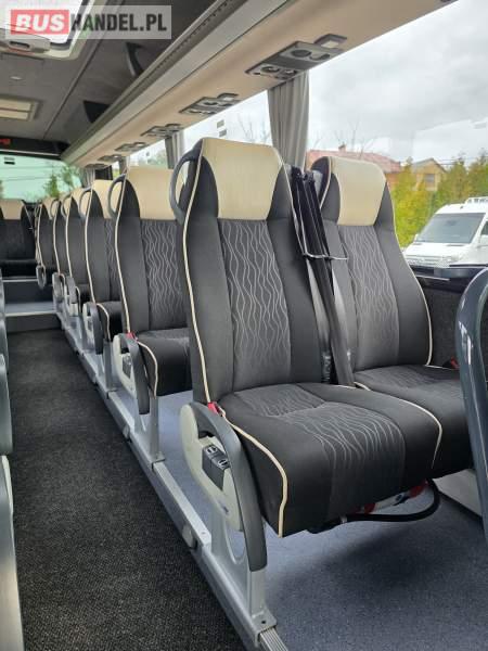 : lodówka, oświetlenie indywidualne, nawiewy dyszowe, siateczki, ABS, ASR, tempomat, retarder, podnóżki, stoliczki, mikrofon, klimatyzacja, radio, sejf, regulacja wysokości nadwozia, centralny zamek, podwójne szyby boczne, wspomaganie kierownicy, elektryczne lusterka, fotele odchylane i rozsuwane, DVD, ogrzewanie stacjonarne