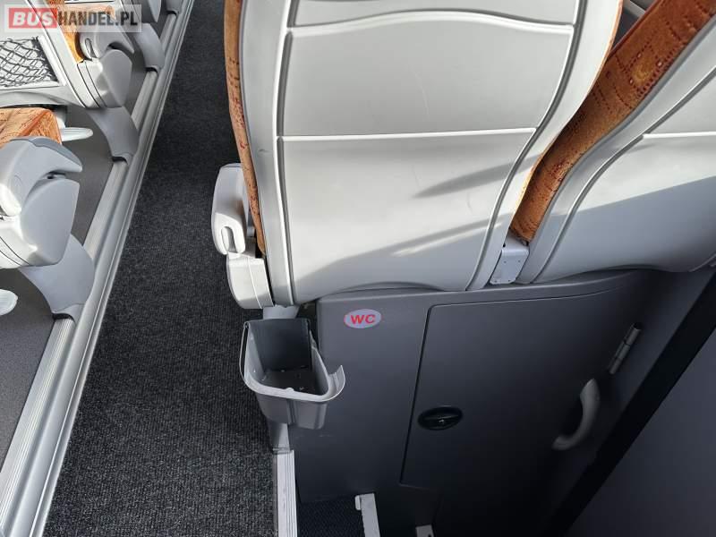 : video, WC, lodówka, kabina sypialna, fotele odchylane, oświetlenie indywidualne, nawiewy dyszowe, siateczki, ABS, ASR, tempomat, retarder, telefon, CD, podnóżki, stoliczki, mikrofon, klimatyzacja, radio, regulacja wysokości nadwozia, centralny zamek, podwójne szyby boczne, wspomaganie kierownicy, elektryczne lusterka, DVD, ogrzewanie stacjonarne, ESP