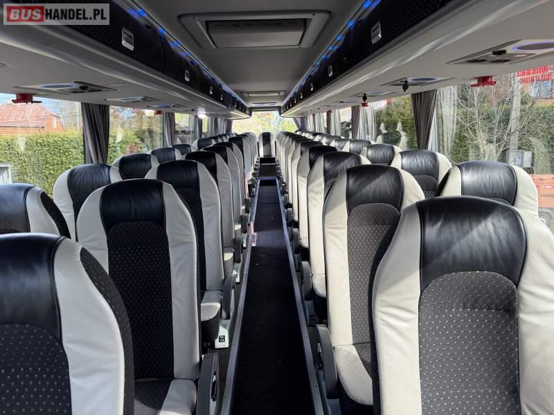 : WC, lodówka, caffebar, kabina sypialna, oświetlenie indywidualne, nawiewy dyszowe, siateczki, ABS, ASR, tempomat, retarder, telefon, podnóżki, stoliczki, mikrofon, klimatyzacja, radio, sejf, regulacja wysokości nadwozia, centralny zamek, podwójne szyby boczne, wspomaganie kierownicy, elektryczne lusterka, aluminiowe felgi, fotele odchylane i rozsuwane, DVD, ogrzewanie stacjonarne, hak holowniczy, ESP