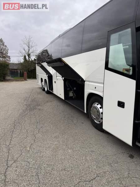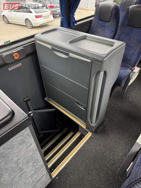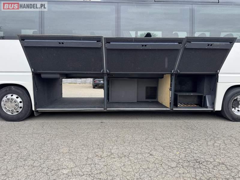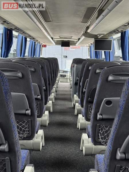: WC, lodówka, caffebar, fotele odchylane, oświetlenie indywidualne, nawiewy dyszowe, siateczki, ABS, ASR, tempomat, retarder, CD, podnóżki, stoliczki, mikrofon, klimatyzacja, radio, wyświetlacz matrix, regulacja wysokości nadwozia, centralny zamek, podwójne szyby boczne, wspomaganie kierownicy, elektryczne lusterka, DVD, ogrzewanie stacjonarne, ESP
