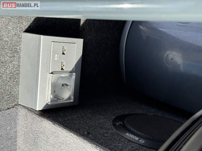 : lodówka, oświetlenie indywidualne, nawiewy dyszowe, siateczki, ABS, ASR, tempomat, retarder, CD, podnóżki, stoliczki, mikrofon, klimatyzacja, radio, regulacja wysokości nadwozia, centralny zamek, podwójne szyby boczne, wspomaganie kierownicy, elektryczne lusterka, fotele odchylane i rozsuwane, DVD, ogrzewanie stacjonarne, ESP