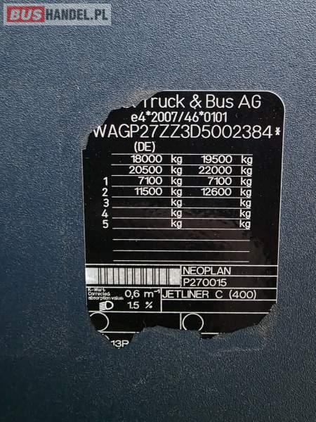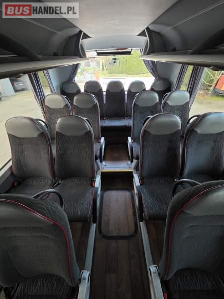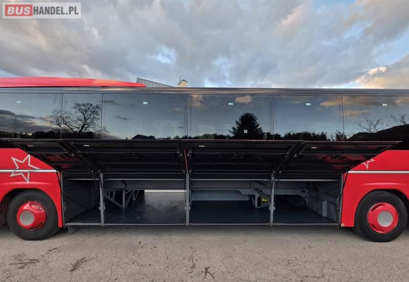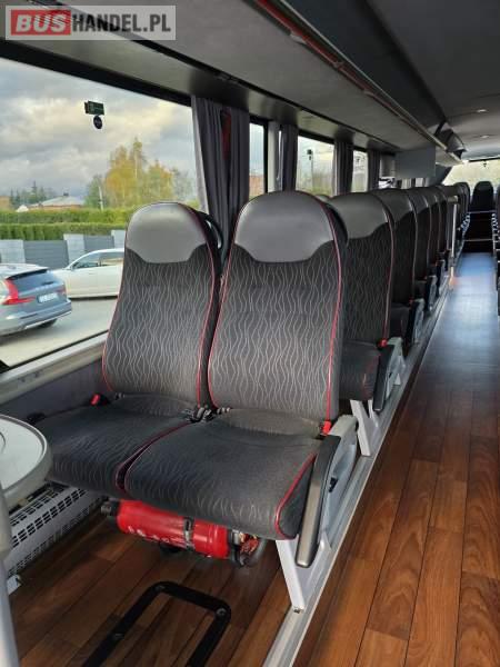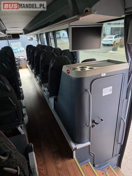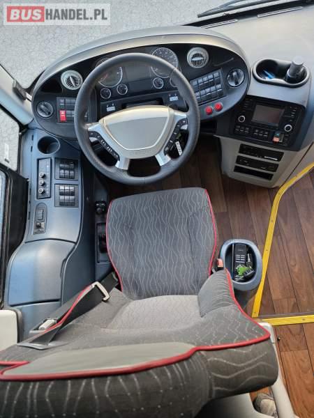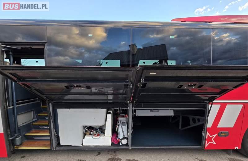 : WC, lodówka, oświetlenie indywidualne, nawiewy dyszowe, siateczki, ABS, ASR, tempomat, retarder, podnóżki, stoliczki, mikrofon, klimatyzacja, radio, sejf, regulacja wysokości nadwozia, centralny zamek, podwójne szyby boczne, wspomaganie kierownicy, elektryczne lusterka, fotele odchylane i rozsuwane, DVD, ogrzewanie stacjonarne