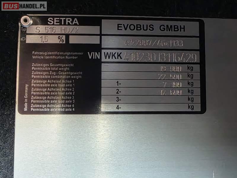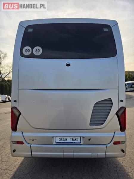 : WC, lodówka, caffebar, kabina sypialna, oświetlenie indywidualne, nawiewy dyszowe, siateczki, ABS, ASR, tempomat, retarder, stoliczki, mikrofon, klimatyzacja, radio, sejf, regulacja wysokości nadwozia, centralny zamek, podwójne szyby boczne, wspomaganie kierownicy, elektryczne lusterka, fotele odchylane i rozsuwane, DVD, ogrzewanie stacjonarne, ESP