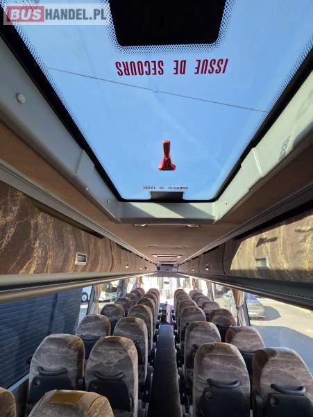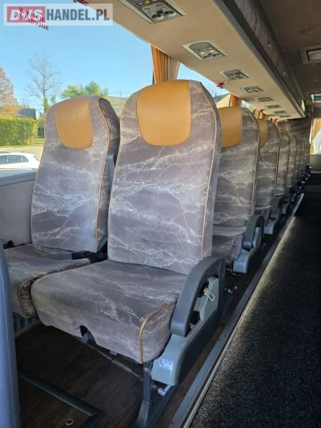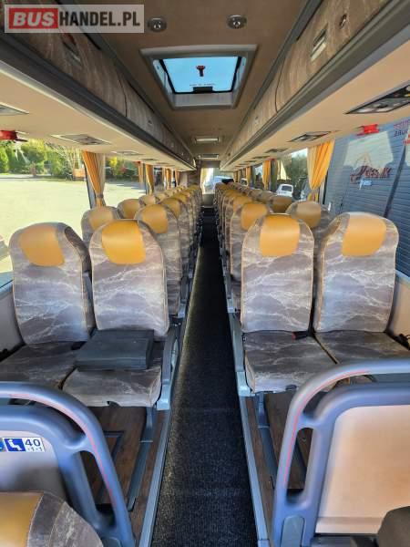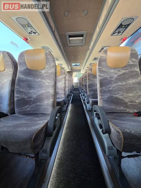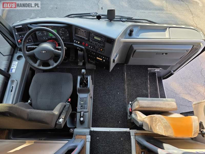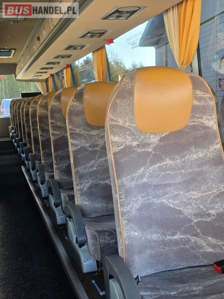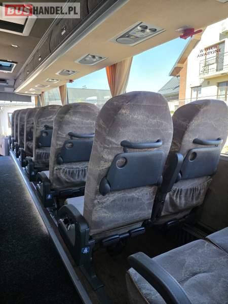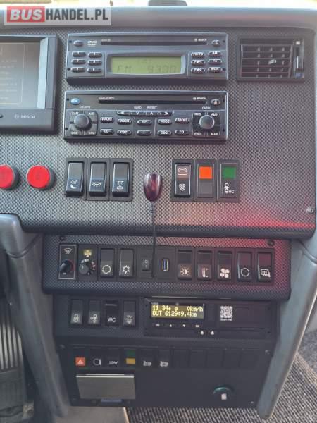 : WC, lodówka, caffebar, fotele odchylane, oświetlenie indywidualne, nawiewy dyszowe, siateczki, ABS, ASR, tempomat, retarder, podnóżki, stoliczki, mikrofon, klimatyzacja, radio, sejf, regulacja wysokości nadwozia, centralny zamek, podwójne szyby boczne, wspomaganie kierownicy, elektryczne lusterka, DVD, ogrzewanie stacjonarne