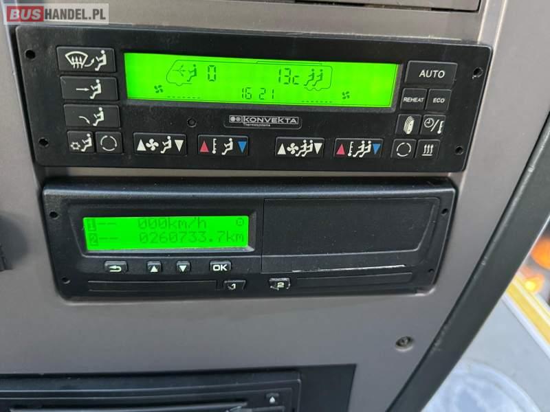 : oświetlenie indywidualne, nawiewy dyszowe, ABS, ASR, tempomat, retarder, CD, podnóżki, fotele nieodchylane, mikrofon, klimatyzacja, radio, wyświetlacz matrix, rampa dla inwalidów, regulacja wysokości nadwozia, centralny zamek, podwójne szyby boczne, wspomaganie kierownicy, elektryczne lusterka, ogrzewanie stacjonarne, ESP