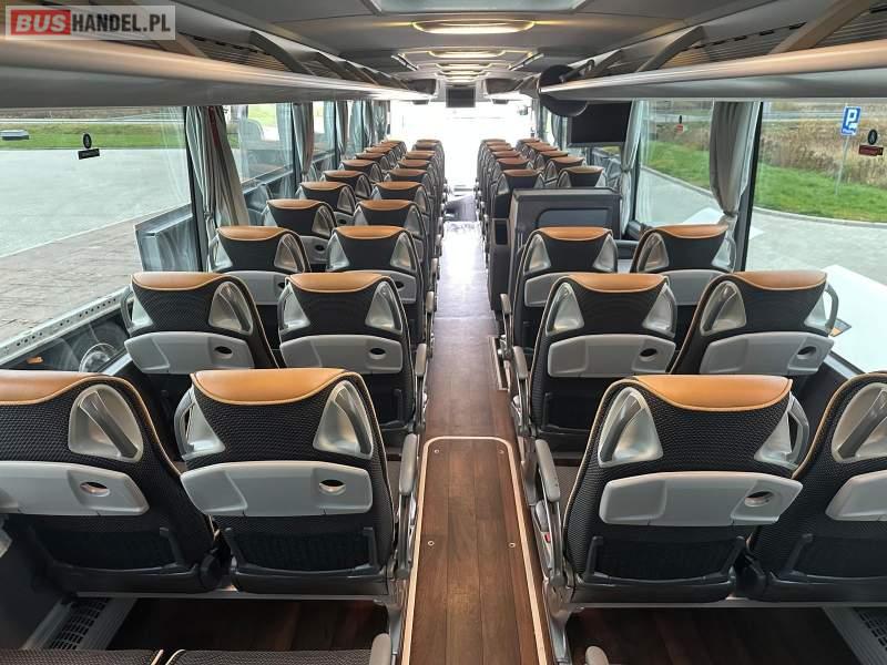 : video, WC, lodówka, kabina sypialna, fotele odchylane, oświetlenie indywidualne, nawiewy dyszowe, siateczki, ABS, ASR, tempomat, retarder, telefon, nawigacja, CD, podnóżki, stoliczki, mikrofon, klimatyzacja, radio, wyświetlacz matrix, sejf, regulacja wysokości nadwozia, centralny zamek, podwójne szyby boczne, wspomaganie kierownicy, elektryczne lusterka, aluminiowe felgi, fotele odchylane i rozsuwane, DVD, ogrzewanie stacjonarne, hak holowniczy, ESP