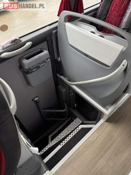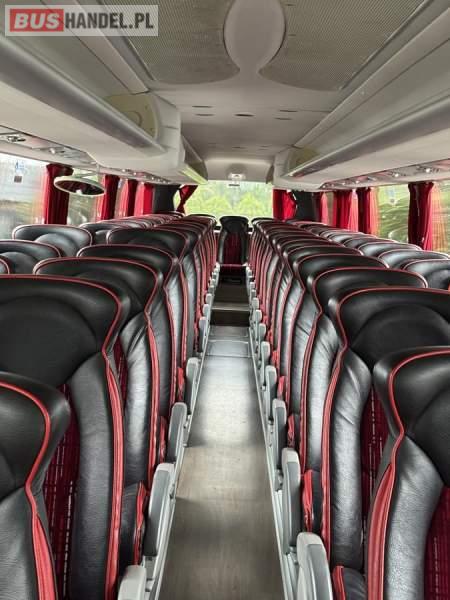 : WC, lodówka, fotele odchylane, oświetlenie indywidualne, nawiewy dyszowe, siateczki, ABS, ASR, tempomat, retarder, CD, podnóżki, stoliczki, mikrofon, klimatyzacja, radio, regulacja wysokości nadwozia, centralny zamek, podwójne szyby boczne, wspomaganie kierownicy, elektryczne lusterka, DVD, ogrzewanie stacjonarne, ESP