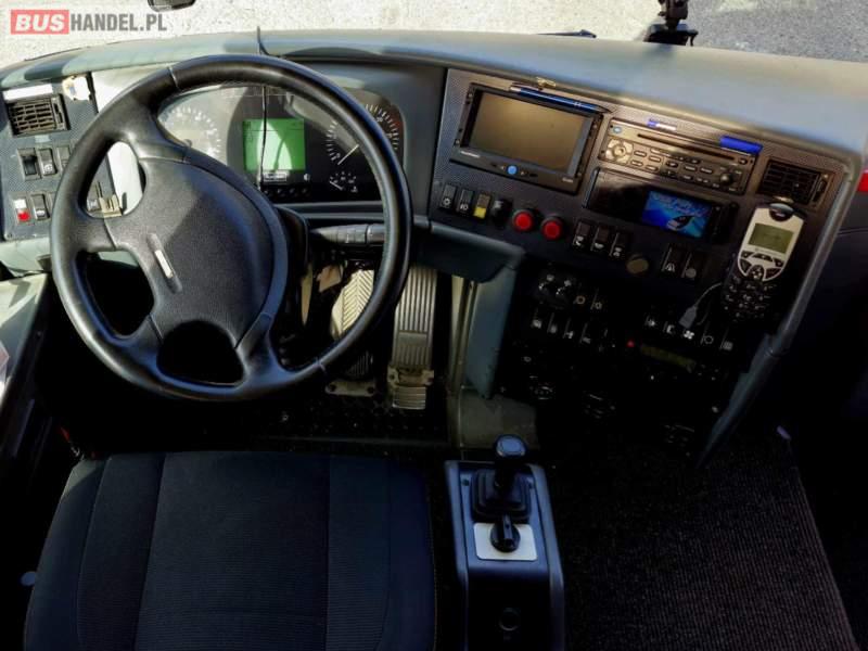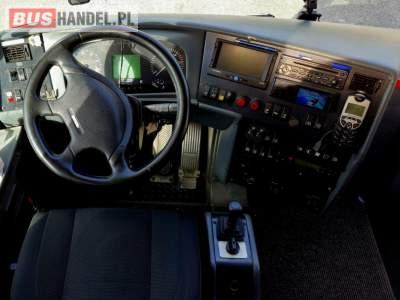 : WC, lodówka, kabina sypialna, fotele odchylane, oświetlenie indywidualne, ABS, ASR, tempomat, retarder, podnóżki, mikrofon, klimatyzacja, radio, sejf, podwójne szyby boczne, fotele odchylane i rozsuwane