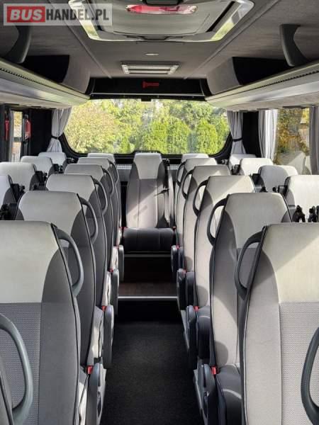 : oświetlenie indywidualne, nawiewy dyszowe, siateczki, ABS, ASR, tempomat, retarder, CD, stoliczki, mikrofon, klimatyzacja, radio, regulacja wysokości nadwozia, centralny zamek, podwójne szyby boczne, wspomaganie kierownicy, elektryczne lusterka, fotele odchylane i rozsuwane, DVD, ogrzewanie stacjonarne, hak holowniczy, ESP
