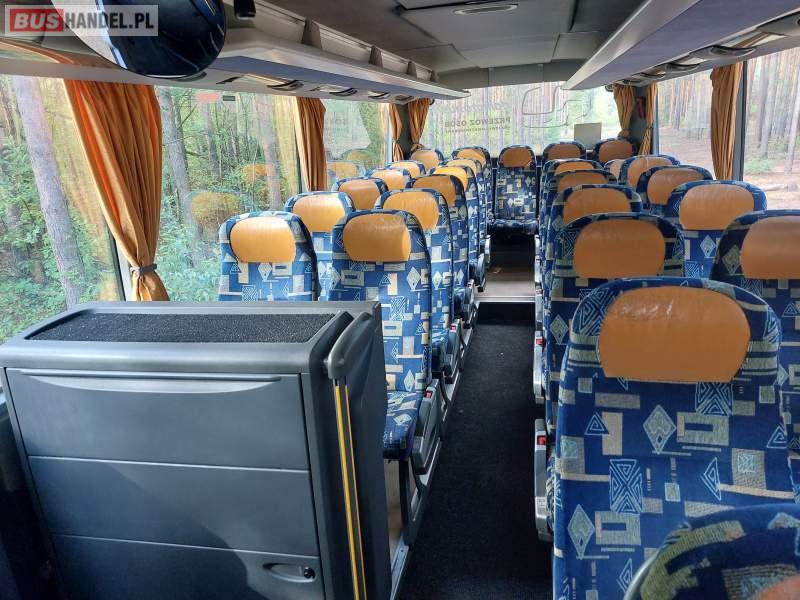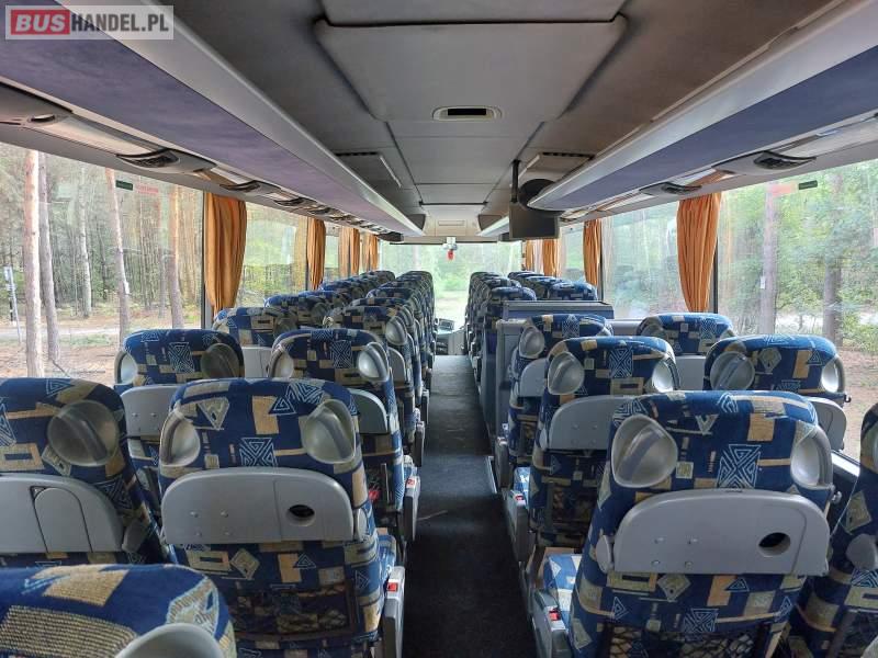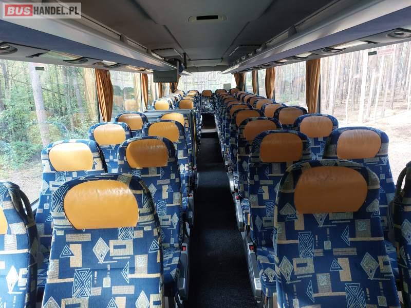: video, WC, lodówka, caffebar, kabina sypialna, oświetlenie indywidualne, nawiewy dyszowe, siateczki, ABS, ASR, tempomat, retarder, nawigacja, CD, podnóżki, stoliczki, mikrofon, klimatyzacja, radio, kuchenka mikrofalowa, wyświetlacz matrix, sejf, regulacja wysokości nadwozia, centralny zamek, podwójne szyby boczne, wspomaganie kierownicy, elektryczne lusterka, fotele odchylane i rozsuwane, DVD, ogrzewanie stacjonarne, ESP