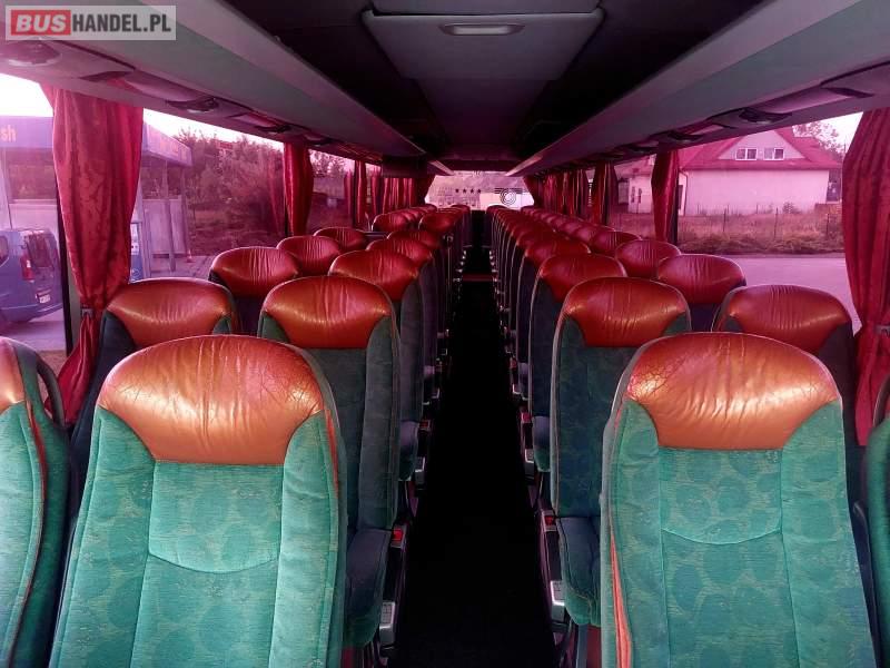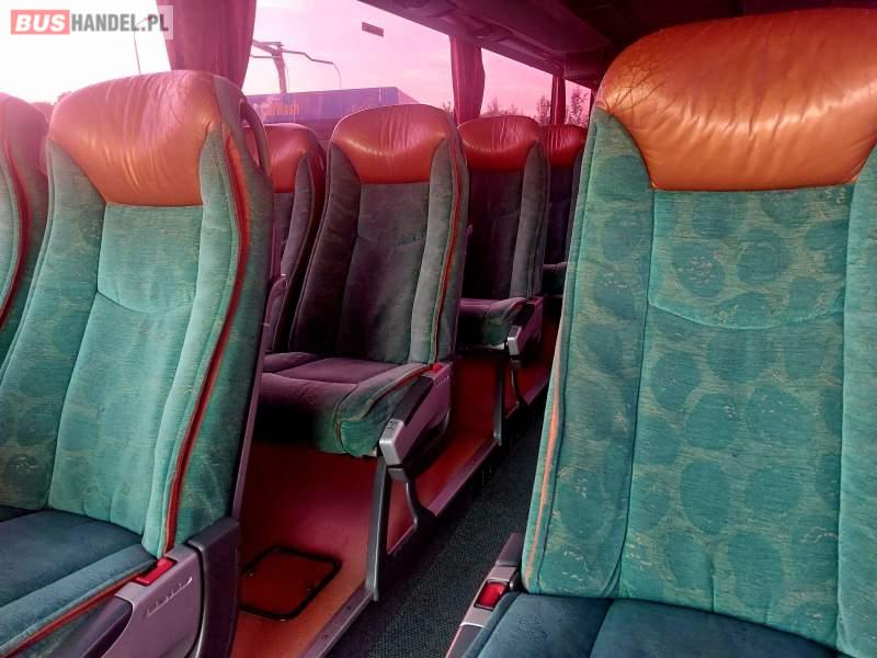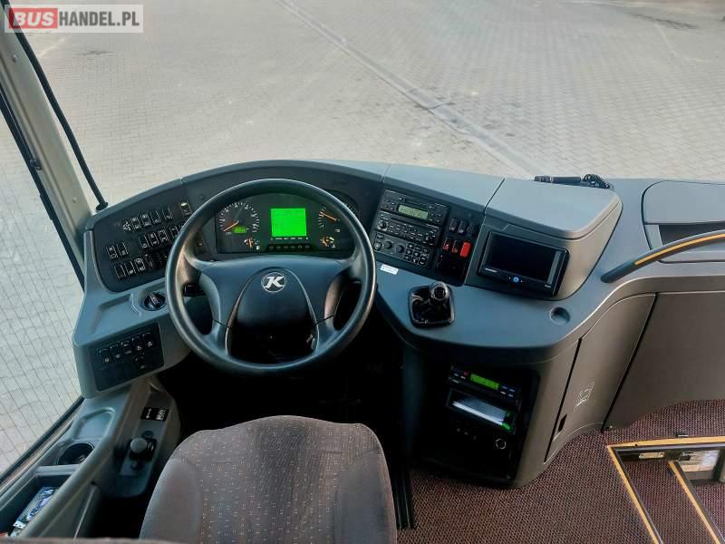 : video, WC, lodówka, caffebar, kabina sypialna, oświetlenie indywidualne, nawiewy dyszowe, siateczki, ABS, ASR, tempomat, retarder, nawigacja, CD, podnóżki, stoliczki, mikrofon, klimatyzacja, radio, kuchenka mikrofalowa, wyświetlacz matrix, sejf, regulacja wysokości nadwozia, centralny zamek, podwójne szyby boczne, wspomaganie kierownicy, elektryczne lusterka, fotele odchylane i rozsuwane, DVD, ogrzewanie stacjonarne, ESP