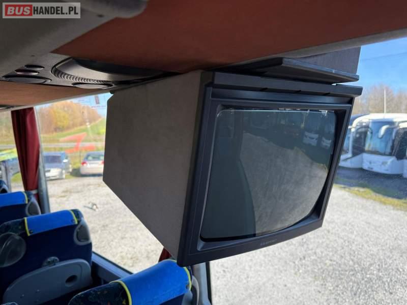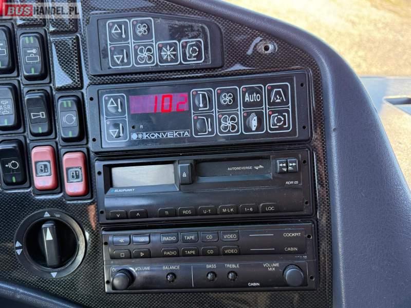 : video, lodówka, oświetlenie indywidualne, nawiewy dyszowe, siateczki, ABS, ASR, tempomat, retarder, CD, podnóżki, stoliczki, mikrofon, klimatyzacja, radio, regulacja wysokości nadwozia, centralny zamek, podwójne szyby boczne, wspomaganie kierownicy, elektryczne lusterka, fotele odchylane i rozsuwane, DVD, ogrzewanie stacjonarne