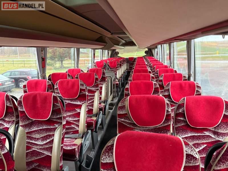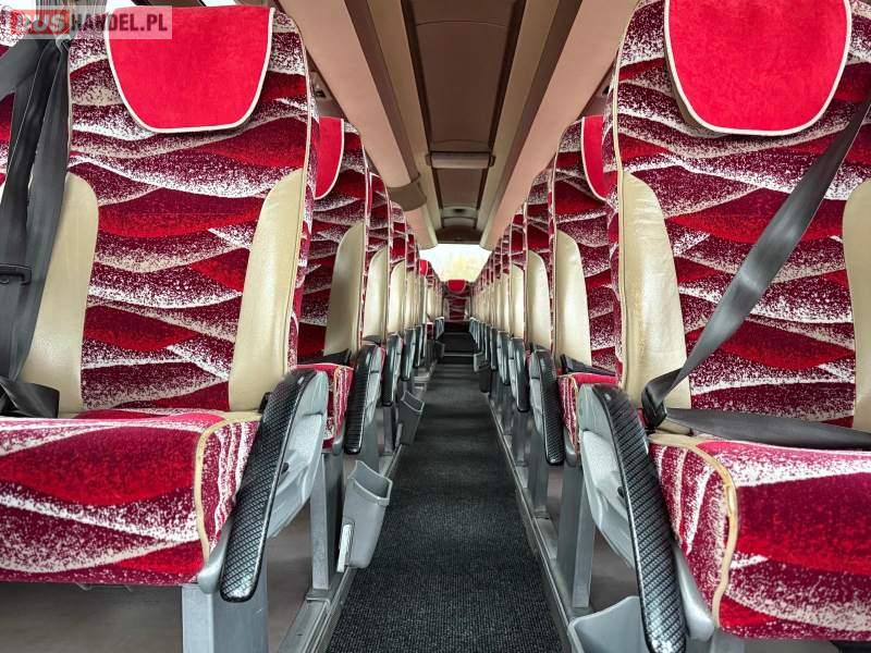 : video, WC, lodówka, kabina sypialna, oświetlenie indywidualne, nawiewy dyszowe, siateczki, ABS, ASR, tempomat, retarder, CD, podnóżki, mikrofon, klimatyzacja, radio, regulacja wysokości nadwozia, centralny zamek, podwójne szyby boczne, wspomaganie kierownicy, elektryczne lusterka, aluminiowe felgi, fotele odchylane i rozsuwane, DVD, ogrzewanie stacjonarne, ESP