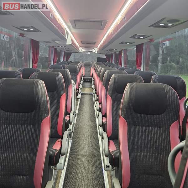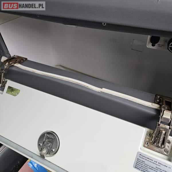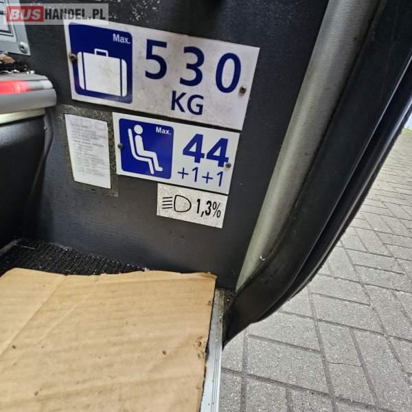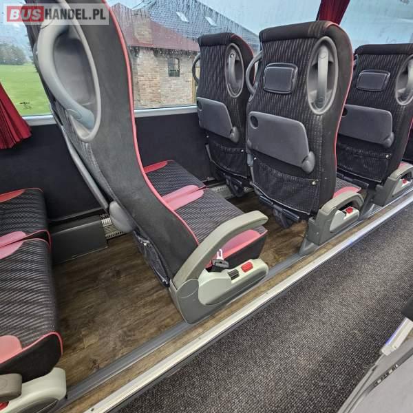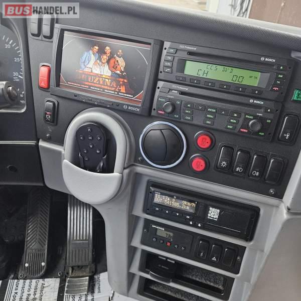 : video, WC, lodówka, fotele odchylane, oświetlenie indywidualne, nawiewy dyszowe, siateczki, ABS, ASR, tempomat, retarder, CD, podnóżki, stoliczki, mikrofon, klimatyzacja, radio, regulacja wysokości nadwozia, centralny zamek, podwójne szyby boczne, wspomaganie kierownicy, elektryczne lusterka, DVD, ogrzewanie stacjonarne, hak holowniczy, ESP