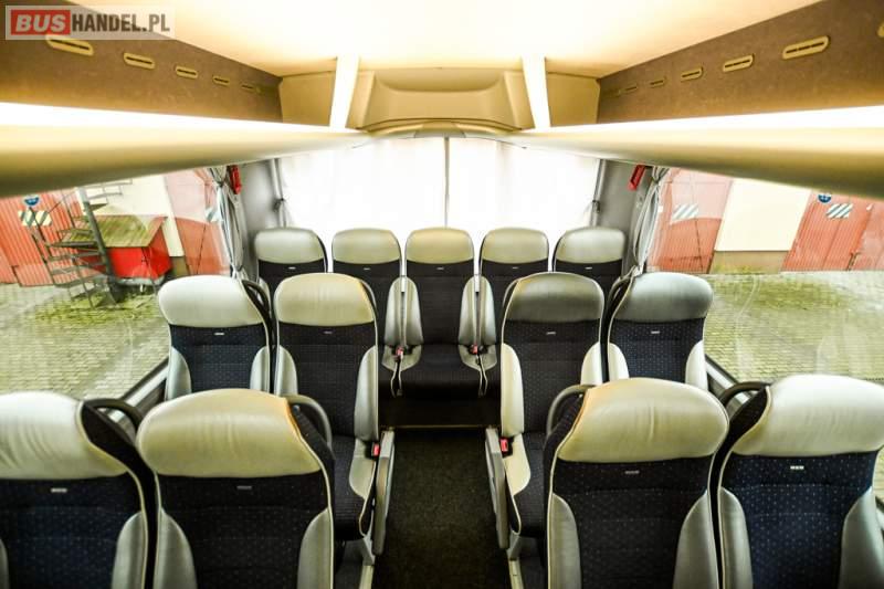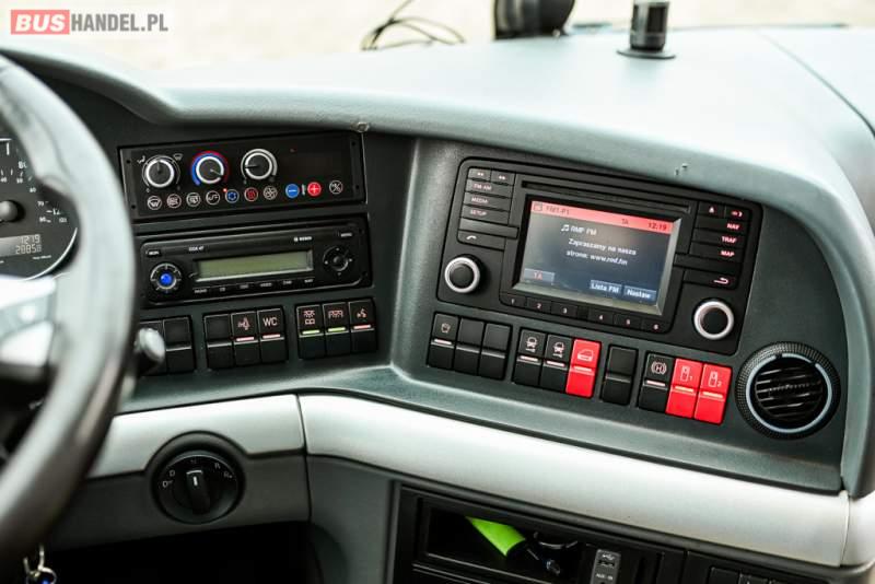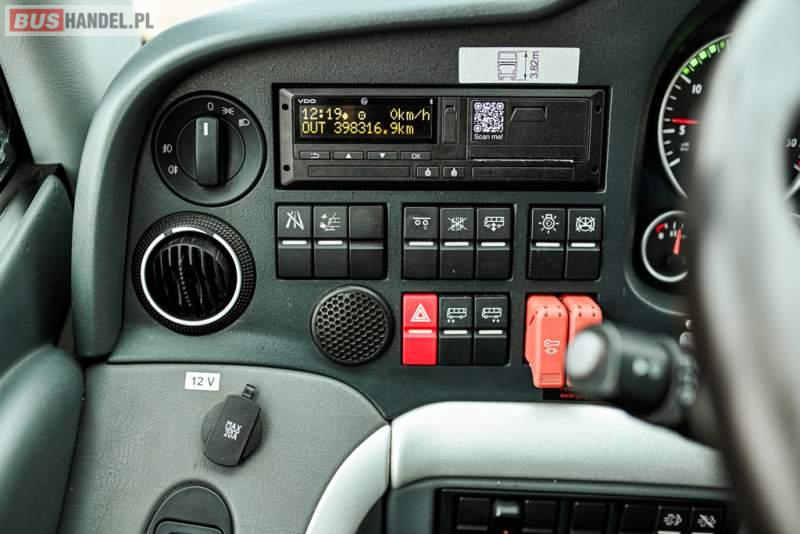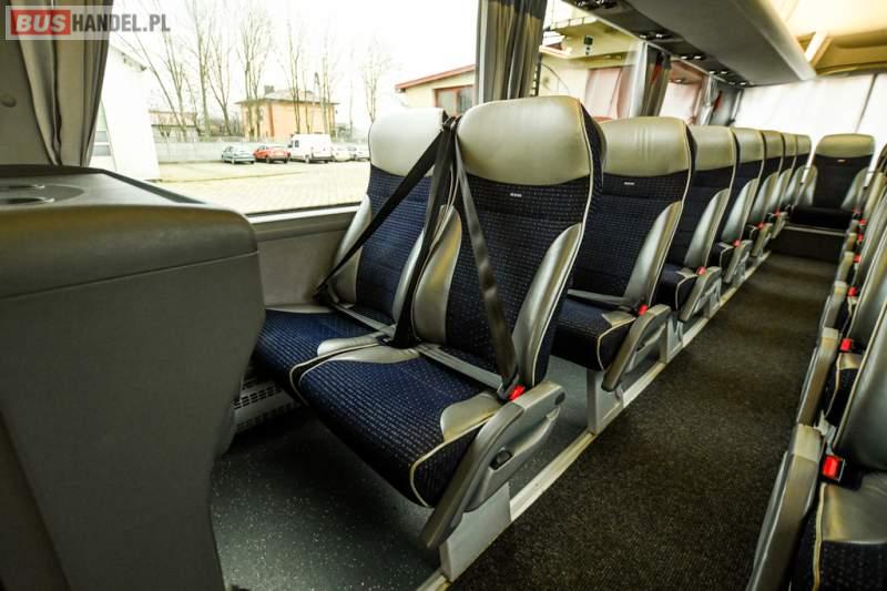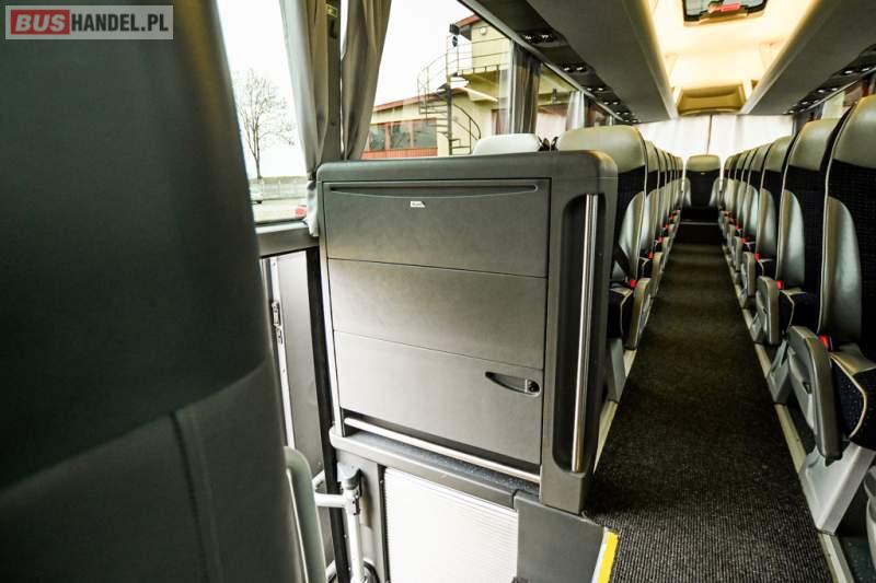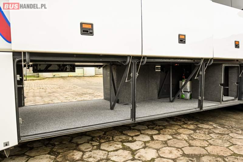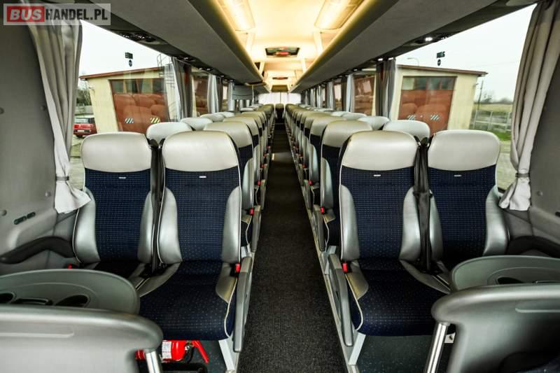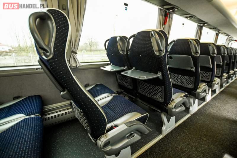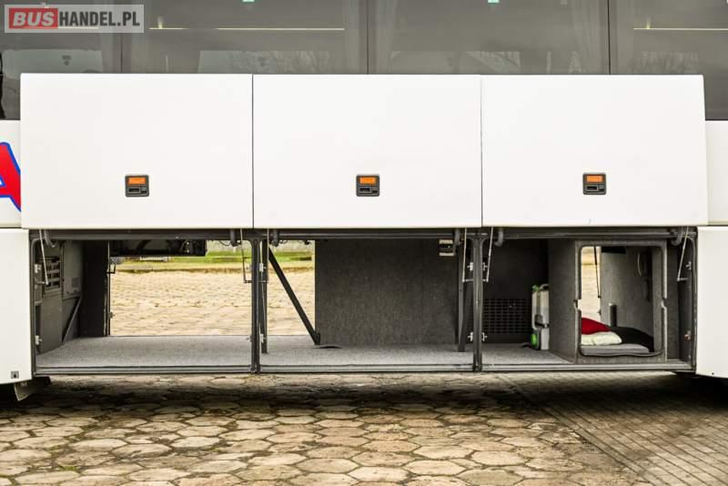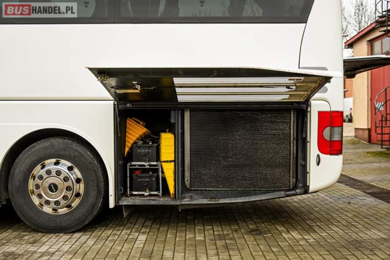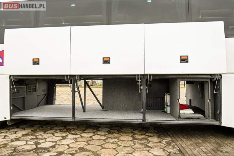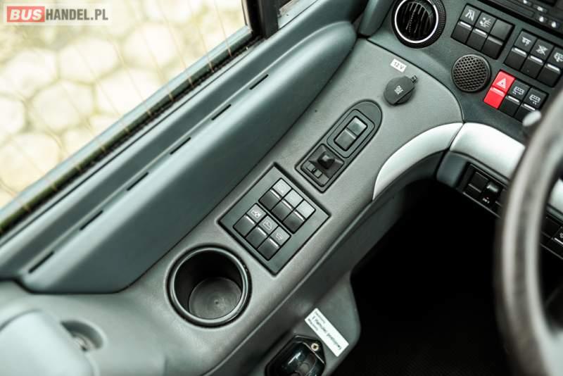 : klimatyzacja, WC, lodówka, caffebar, kabina sypialna, oświetlenie indywidualne, nawiewy dyszowe, podnóżki, stoliczki, siateczki, ABS, ASR, tempomat, retarder, telefon, nawigacja, CD, mikrofon, radio, fotele odchylane i rozsuwane, wyświetlacz matrix, sejf, regulacja wysokości nadwozia, centralny zamek, podwójne szyby boczne, wspomaganie kierownicy, aluminiowe felgi, elektryczne lusterka, ogrzewanie stacjonarne, DVD, ESP